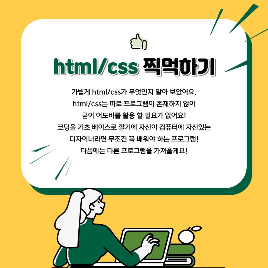 본문 시작 홈으로 학과자랑 학과소개 학과과정 시영소식 입학/취업 AI 학과자랑 SNS소통 홈페이지가이드 갤러리 학과자랑 갤러리 공모전 동아리 졸업전시회 갤러리 페이스북 트위터 프린트 예비 대학생을 위한 디자인 프로그램 설명 4탄 (Html/Css) 시각영상디자인학과 2235 2022-02-07 3학년때 배우는 html/css입니다. 목록 이전예비 대학생을 위한 디자인 프로그램 설명 3탄 (애프터이펙트) 다음 예비 대학생을 위한 디자인 프로그램 설명 5탄 (인디자인) 담당부서 : 시각영상디자인학과 담당자 : - 연락처 : 043-649-1726 최종수정일 : 2024-10-26 만족도조사 만족도 조사 이 페이지에서 제공하는 정보에 대하여 만족하시나요? 매우만족 만족 보통 불만족 매우불만족