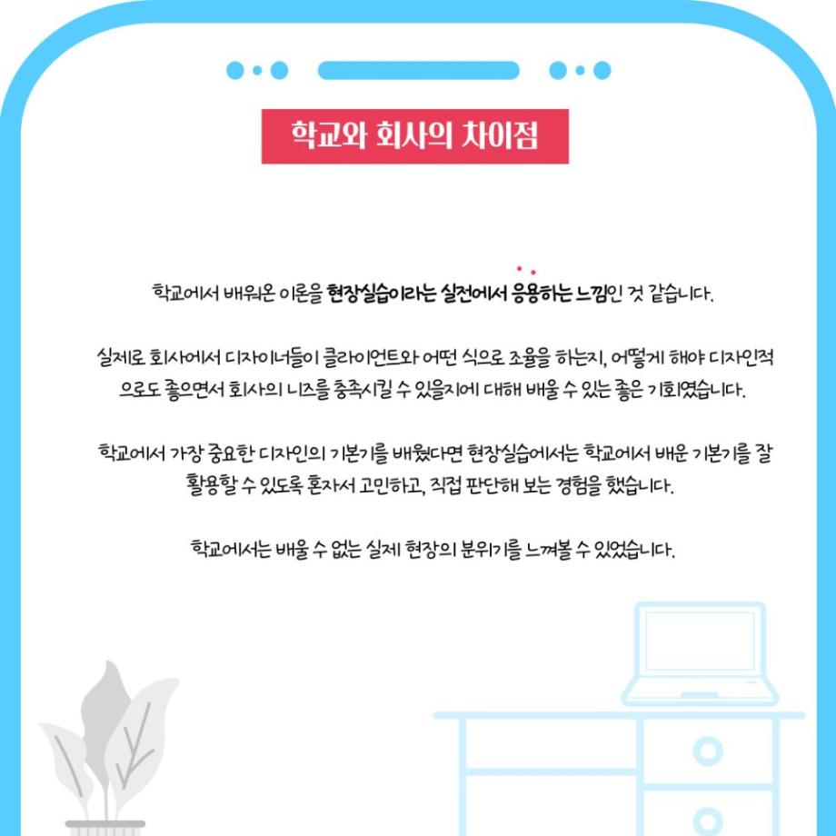 본문 시작 홈으로 학과자랑 학과소개 학과과정 시영소식 입학/취업 AI 학과자랑 SNS소통 홈페이지가이드 갤러리 학과자랑 갤러리 공모전 동아리 졸업전시회 갤러리 페이스북 트위터 프린트 2022년 여름방학 현장실습 알아보기! 2탄 시각영상디자인학과 4739 2022-08-03 2022년 여름방학 현장실습 알아보기! 2탄 유튜브 링크 https://www.youtube.com/watch?v=4CEG3-eYjWE&t=25s [출처] 2022년 여름방학 현장실습 알아보기! 2탄|작성자 세명대학교시각영상 목록 이전세명대학교 시각영상디자인 학생들의 현장실습 1탄 다음 세명대학교만의 특별한 휴식공간 담당부서 : 시각영상디자인학과 담당자 : - 연락처 : 043-649-1726 최종수정일 : 2024-10-26 만족도조사 만족도 조사 이 페이지에서 제공하는 정보에 대하여 만족하시나요? 매우만족 만족 보통 불만족 매우불만족
