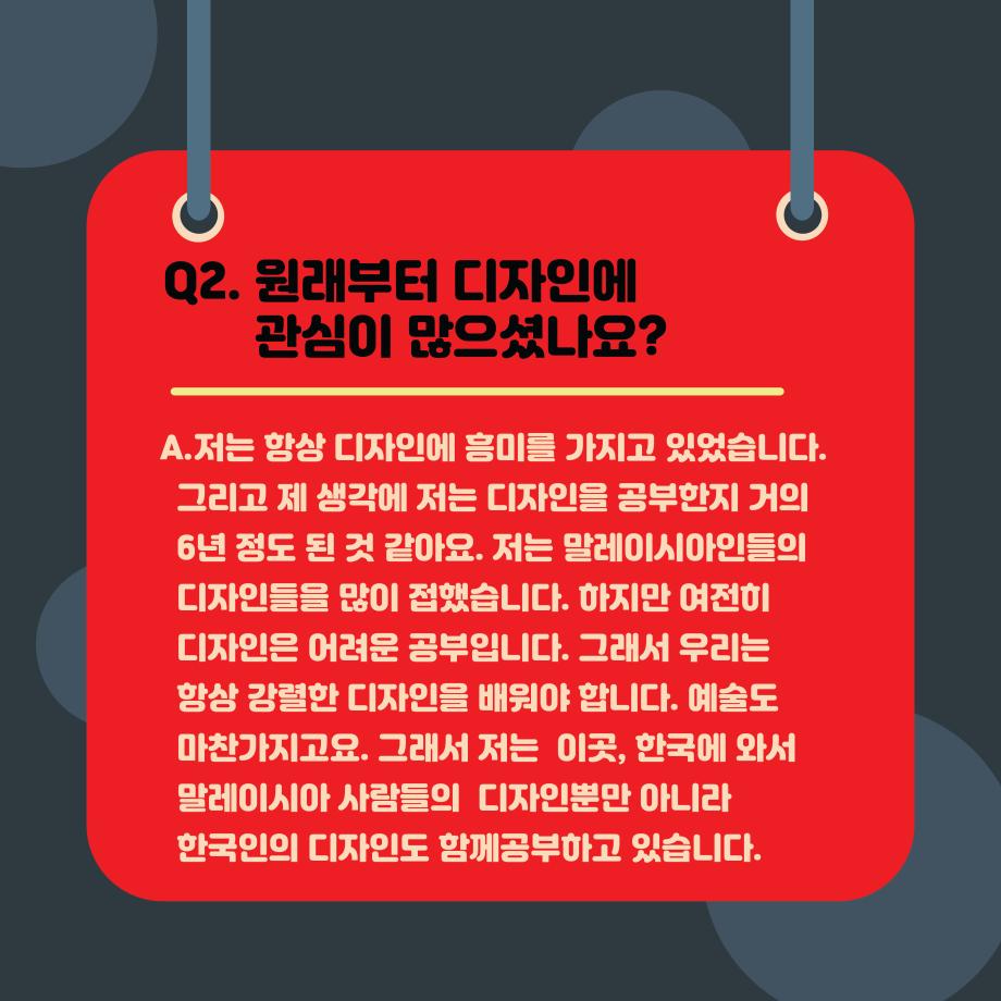 본문 시작 홈으로 학과자랑 학과소개 학과과정 시영소식 입학/취업 AI 학과자랑 SNS소통 홈페이지가이드 갤러리 학과자랑 갤러리 공모전 동아리 졸업전시회 갤러리 페이스북 트위터 프린트 말레이시아 교환학생 인터뷰 시각영상디자인학과 4499 2023-06-19 목록 이전벽화활동 인터뷰 - 박범준 학생 다음 2023년도 한국디자인학회 국제초대전 졸업생, 대학원생 전시 담당부서 : 시각영상디자인학과 담당자 : - 연락처 : 043-649-1726 최종수정일 : 2024-10-26 만족도조사 만족도 조사 이 페이지에서 제공하는 정보에 대하여 만족하시나요? 매우만족 만족 보통 불만족 매우불만족