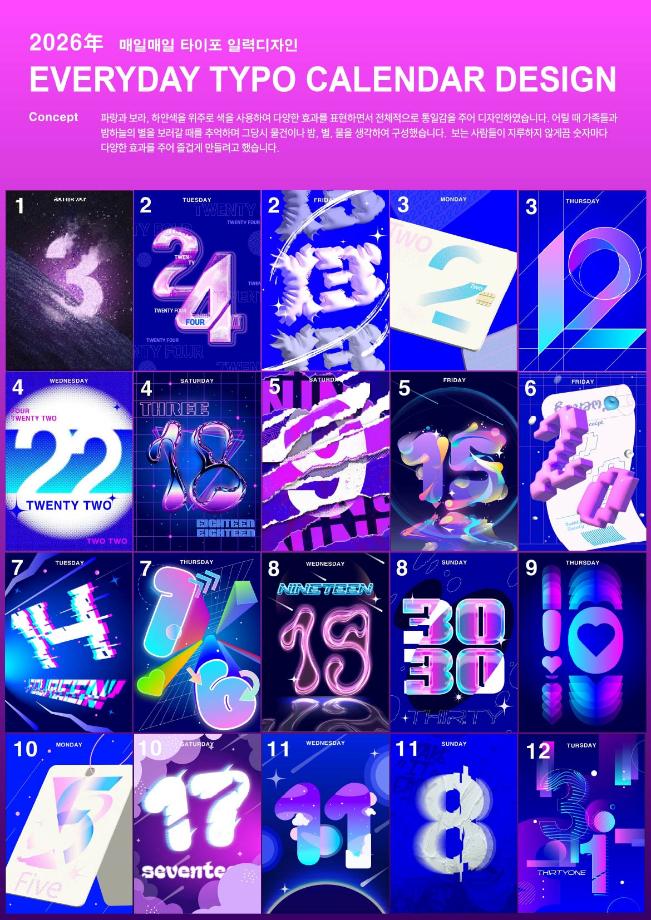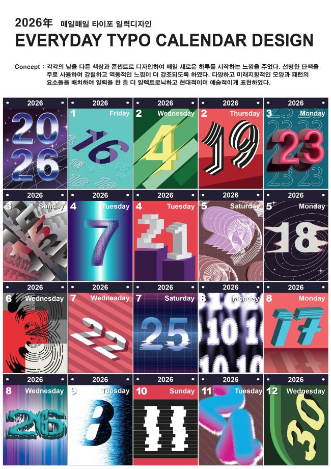 본문 시작 홈으로 학과자랑 학과소개 학과과정 시영소식 입학/취업 AI 학과자랑 SNS소통 홈페이지가이드 갤러리 학과자랑 갤러리 공모전 동아리 졸업전시회 갤러리 페이스북 트위터 프린트 과제전 1 - 타이포그래피(2학년 수업 과제 작품) 시각영상디자인학과 2503 2024-08-18 과제전 1 - 타이포그래피(2학년 수업 과제 작품) 목록 이전2024년 시각영상디자인학과 상반기 공모전 수상 실적 다음 과제전 2 - 드로잉(1학년 수업 과제 작품) 담당부서 : 시각영상디자인학과 담당자 : - 연락처 : 043-649-1726 최종수정일 : 2024-10-26 만족도조사 만족도 조사 이 페이지에서 제공하는 정보에 대하여 만족하시나요? 매우만족 만족 보통 불만족 매우불만족