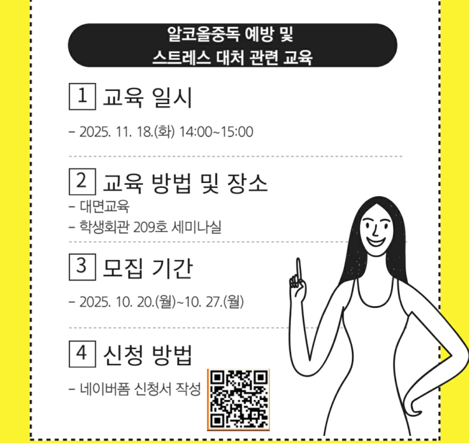 본문 시작 홈으로 학과생활 학과소개 교수소개 교과과정 학과생활 홈페이지가이드 사진게시판 공지사항 사진게시판 전공자료실 동아리 학과행사 사진게시판 페이스북 트위터 프린트 [CHARM케어상담센터] 2025학년도 2학기 알코올중독 예방 및 스트레스 대처 관련 교육 진행 안내 산업디자인학과 347 2025-10-21 목록 이전[CHARM케어상담센터] 2025학년도 2학기 자살예방교육 진행 안내 다음 [응원현수막] 아트&산업디자인학과 실기수험생들을 위하여 담당부서 : 산업디자인학과 담당자 : - 연락처 : 043-649-1436 최종수정일 : 2024-10-26 만족도조사 만족도 조사 이 페이지에서 제공하는 정보에 대하여 만족하시나요? 매우만족 만족 보통 불만족 매우불만족