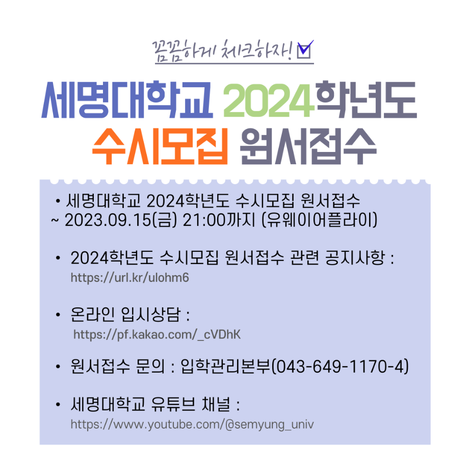 본문 시작 홈으로 학과생활 학과소개 교수소개 교과과정 학과생활 홈페이지가이드 사진게시판 공지사항 사진게시판 전공자료실 동아리 학과행사 사진게시판 페이스북 트위터 프린트 [수시모집] 2024학년도 세명대학교 수시모집 원서접수 안내 산업디자인학과 3381 2023-09-13 목록 이전[건강검진] 2023학년도 재학생 무료 건강검진 안내 다음 [메가캡스톤] 2023학년도 산업디자인학과 메가캡스톤 디자인 활동사진 담당부서 : 산업디자인학과 담당자 : - 연락처 : 043-649-1436 최종수정일 : 2024-10-26 만족도조사 만족도 조사 이 페이지에서 제공하는 정보에 대하여 만족하시나요? 매우만족 만족 보통 불만족 매우불만족
