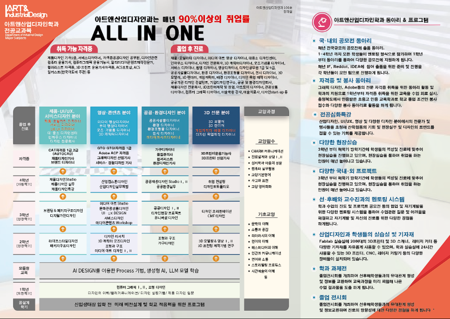 본문 시작 홈으로 학과생활 학과소개 교수소개 교과과정 학과생활 홈페이지가이드 사진게시판 공지사항 사진게시판 전공자료실 동아리 학과행사 사진게시판 페이스북 트위터 프린트 [브로셔] 산업디자인학과가 아트&산업디자인학과로 새롭게 태어납니다. 산업디자인학과 827 2025-06-12 목록 이전[공모전] 제60회 대한민국 디자인 전람회 다음 [배낭여행] 2025 세명대학교 자기설계 해외배낭연수 발대식 담당부서 : 산업디자인학과 담당자 : - 연락처 : 043-649-1436 최종수정일 : 2024-10-26 만족도조사 만족도 조사 이 페이지에서 제공하는 정보에 대하여 만족하시나요? 매우만족 만족 보통 불만족 매우불만족
