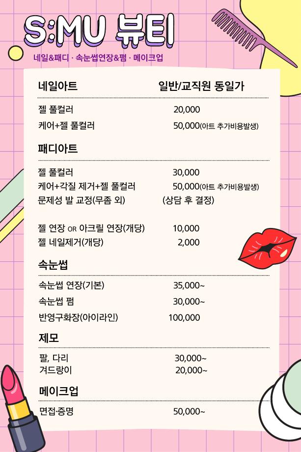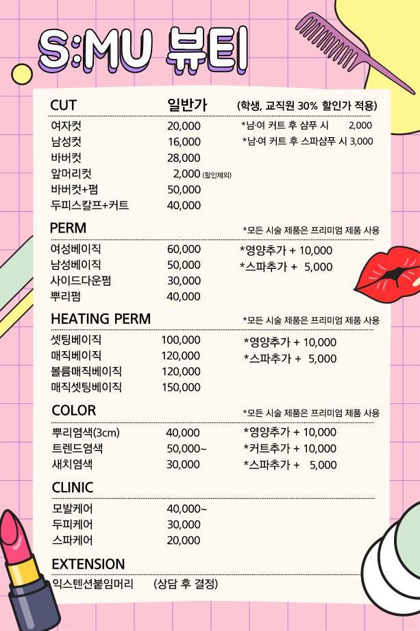 본문 시작 홈으로 커뮤니티 학과소개 교수소개 학과과정 커뮤니티 대학원 홈페이지가이드 포토갤러리 공지사항 채용정보 포토갤러리 Youtube 바로가기 Instargram 바로가기 Blog 바로가기 Facebook 바로가기 포토갤러리 페이스북 트위터 프린트 세명대학교 S:MU 뷰티 살롱 OPEN 뷰티케어학 2958 2023-09-01 1. 오픈일 : 2023년 9월 1일 2. 이용안내 : 전화 or 네이버 예약 3. 할인 : 세명대학교 교직원 인증 시 할인 된 가격으로 이용하실 수 있습니다 4. 위치 : 뷰티케어센터 2층 5. 관련문의 : 043-649-7368 목록 이전재학생 모교방문단: 정신여자고등학교 다음 2023년도 2학기 개강총회