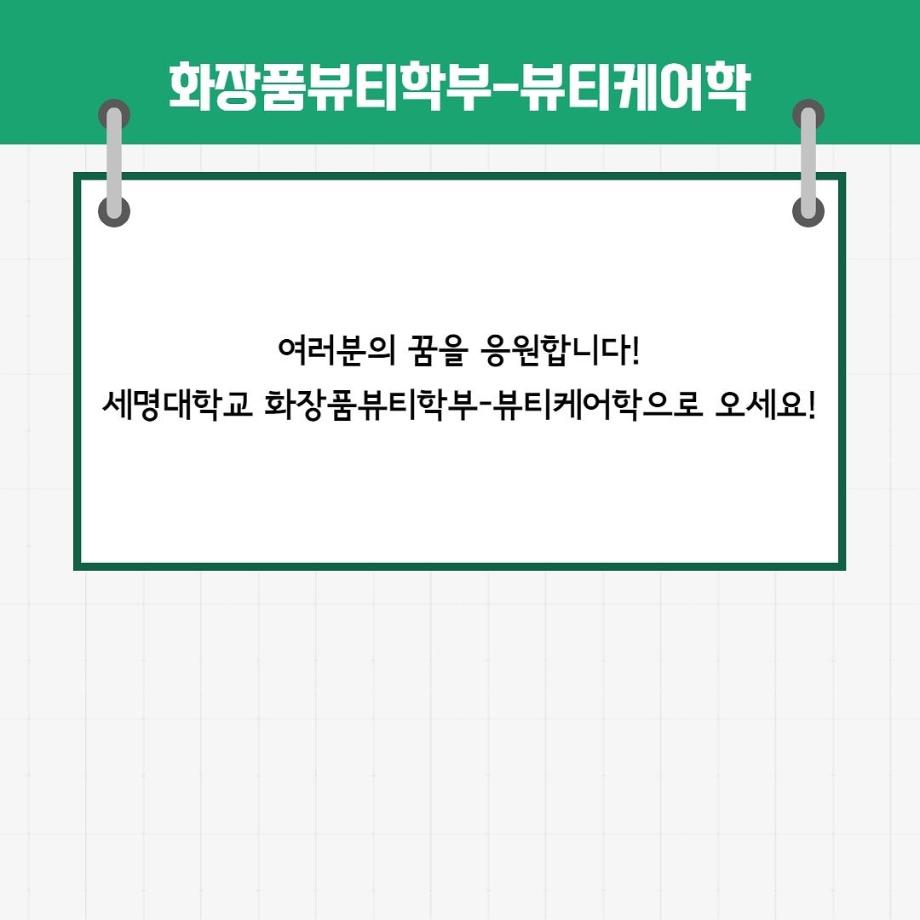 본문 시작 홈으로 커뮤니티 학과소개 교수소개 학과과정 커뮤니티 대학원 홈페이지가이드 포토갤러리 공지사항 채용정보 포토갤러리 Youtube 바로가기 Instargram 바로가기 Blog 바로가기 Facebook 바로가기 포토갤러리 페이스북 트위터 프린트 세명대학교 화장품뷰티학부(뷰티케어학) 2022학년도 정시모집 안내 (2) 뷰티케어학 2150 2022-01-14 뷰티케어학 2022학년도 정시모집 안내입니다~! 목록 이전세명대학교 화장품뷰티학부(뷰티케어학) 2022학년도 정시모집 안내 (1) 다음 RC관 2층 스킨케어 실습실
