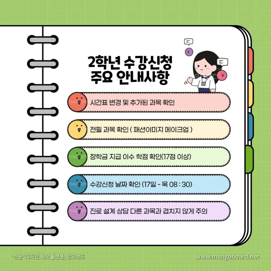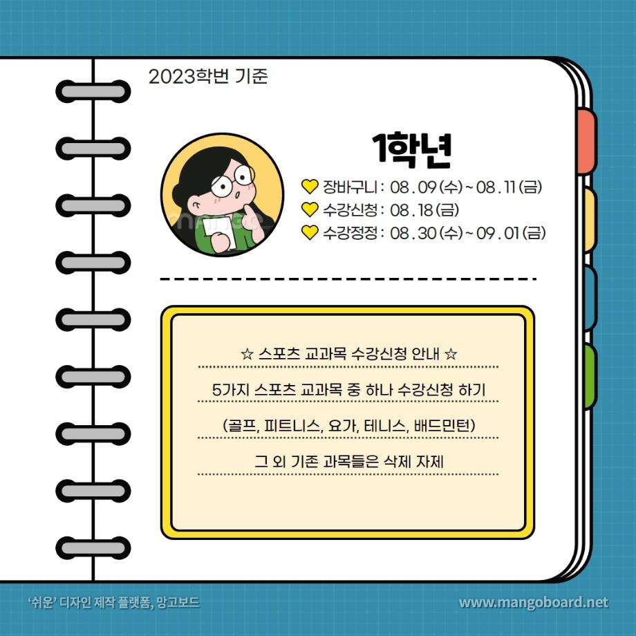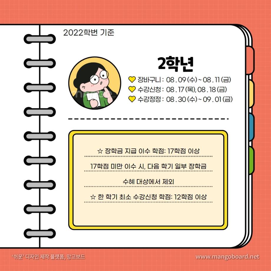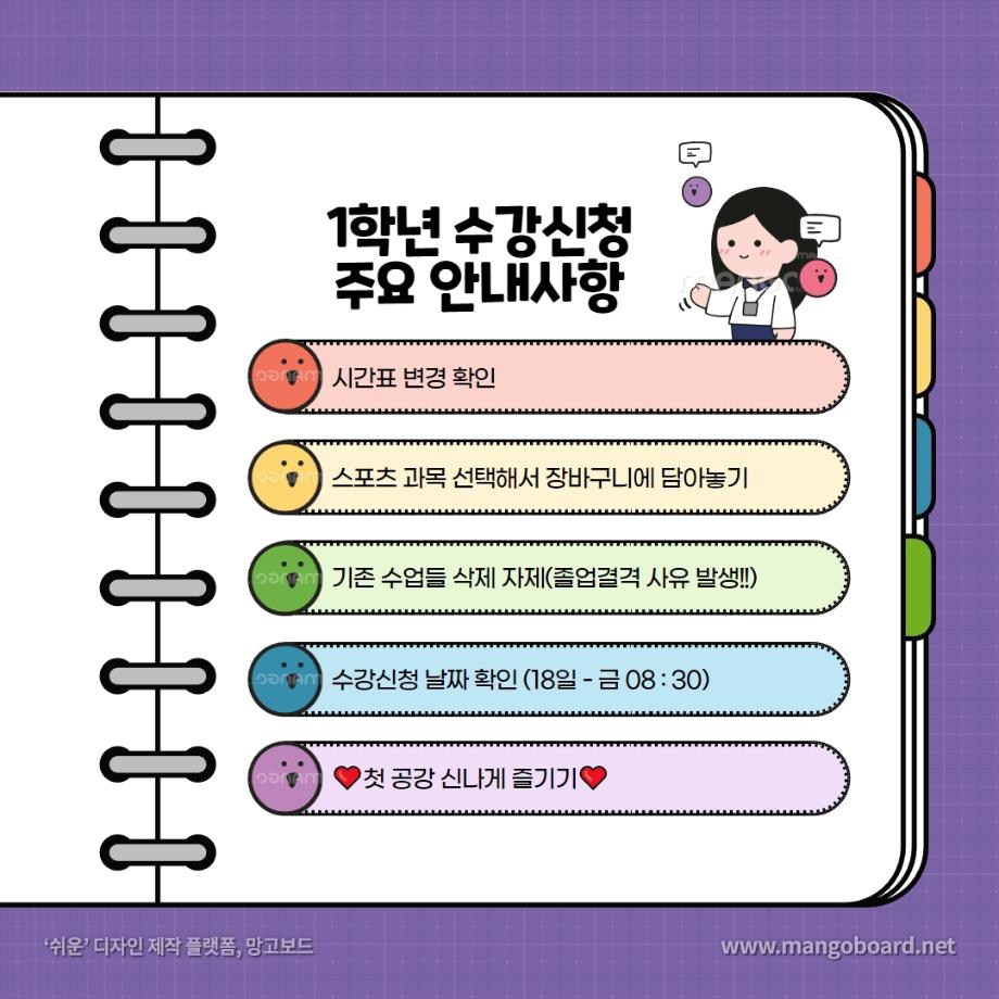 본문 시작 홈으로 커뮤니티 학과소개 교수소개 학과과정 커뮤니티 대학원 홈페이지가이드 포토갤러리 공지사항 채용정보 포토갤러리 Youtube 바로가기 Instargram 바로가기 Blog 바로가기 Facebook 바로가기 포토갤러리 페이스북 트위터 프린트 🌻2023년도 2학기 수강신청 안내 🌻 뷰티케어학 2715 2023-08-09 - 08. 09 ~ 08. 11 [장바구니] - 08. 17 ( 08 : 30 ) [2학년 수강신청] - 08. 18 ( 08 : 30)) [1학년 수강신청] 8월 18일은 모든 학년이 수강신청 가능합니다. 여러분 즐거운 방학 보내고 계신가요~? 수강신청이 얼마 남지 않은 지금 ! 이 내용 꼭 참고하셔서 좋은 결과 있길 바라겠습니다 💖 따로 궁금한 점이 있으시면 편하게 댓글 남겨주세요 ! 목록 이전원주 MBC 아카데미 뷰티스쿨 입시설명회 이전2023 세:티져 프로젝트 숏폼 콘텐츠 공모전