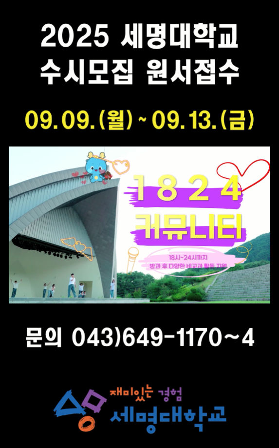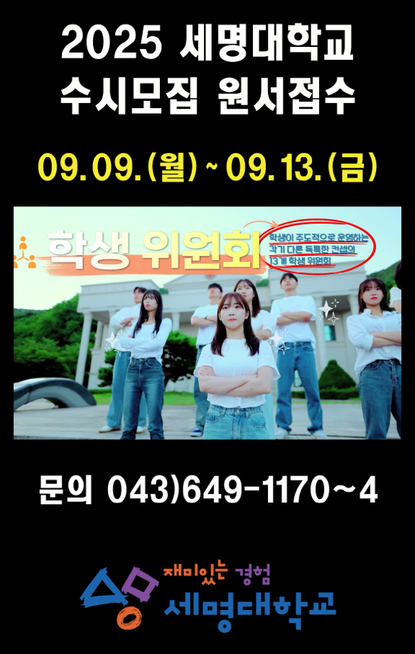 본문 시작 홈으로 커뮤니티 학과소개 교수소개 학과과정 커뮤니티 대학원 홈페이지가이드 포토갤러리 공지사항 채용정보 포토갤러리 Youtube 바로가기 Instargram 바로가기 Blog 바로가기 Facebook 바로가기 포토갤러리 페이스북 트위터 프린트 09.09 ~ 09.13 세명대학교 수시모집 기긴입니다. 뷰티케어학과 1927 2024-08-26 벌써 한 해의 절반이 넘게 지나가고 더위가 조금씩 가시니 또 다시 입시철이 다가왔네요! 세명대학교만의 특색있는 활동들과 원서접수에 관하여 알아볼까요?? 목록 이전뷰티케어학과 22학번 이수연학생이 미용사(네일)국가자격증 취득을 하였습니다~ 다음 예비smu뷰티케어학과 학생들 반가워요!!