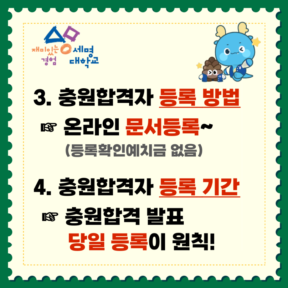 본문 시작 홈으로 커뮤니티 학과소개 교수소개 학과과정 커뮤니티 대학원 홈페이지가이드 포토갤러리 공지사항 채용정보 포토갤러리 Youtube 바로가기 Instargram 바로가기 Blog 바로가기 Facebook 바로가기 포토갤러리 페이스북 트위터 프린트 세명대학교 2025학년도 수시모집 충원합격자 발표/등록 안내 뷰티케어학과 2331 2024-12-17 목록 이전2024 청소년 빅콘서트, 행운을 부르는 예쁜 속눈썹 만들기! 다음 [2025학년도 과학생회비 안내]