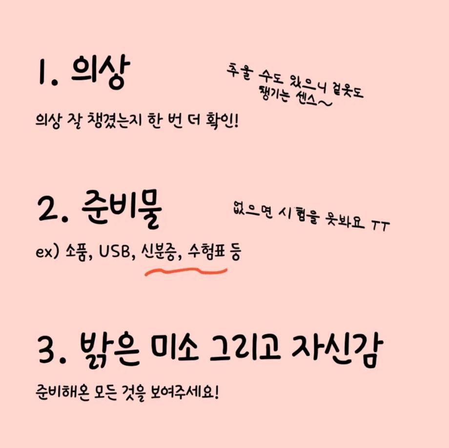 - 수험표, 신분증 반드시 지참. (주민등록증 또는 여권)