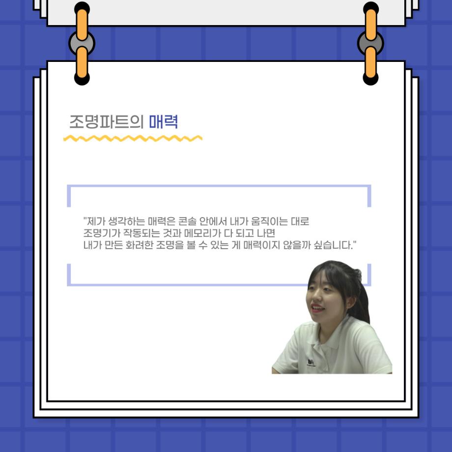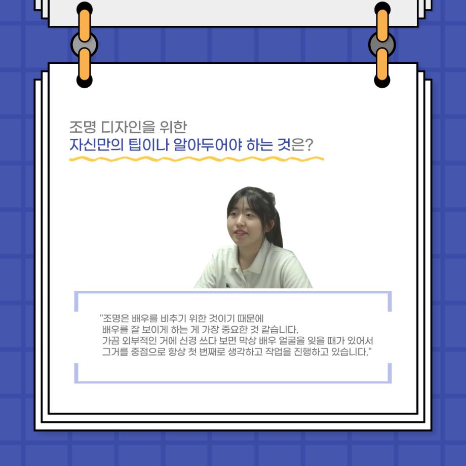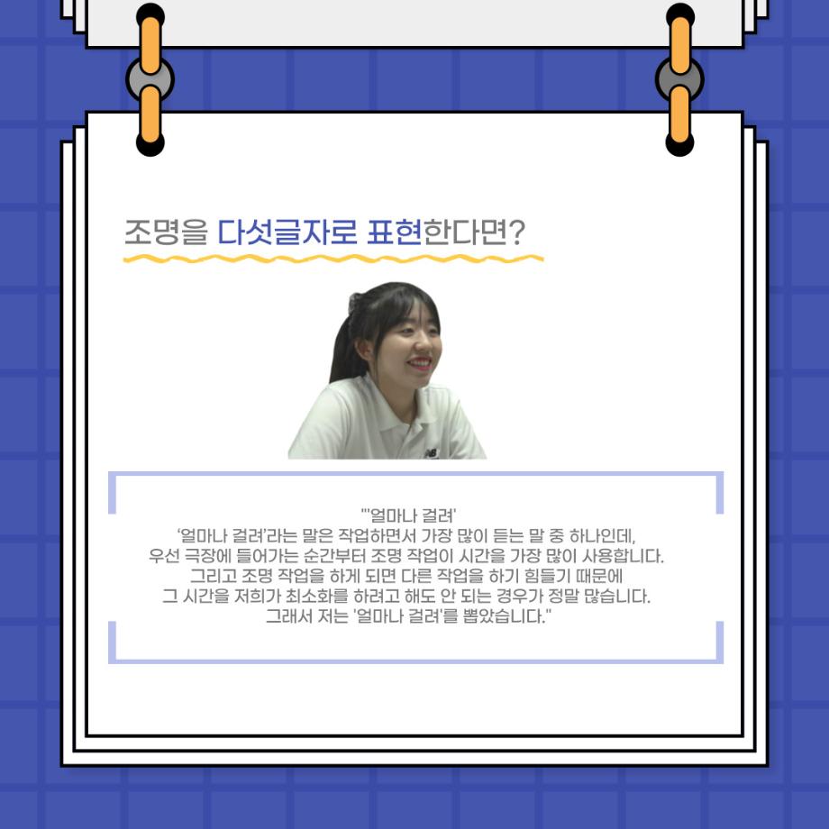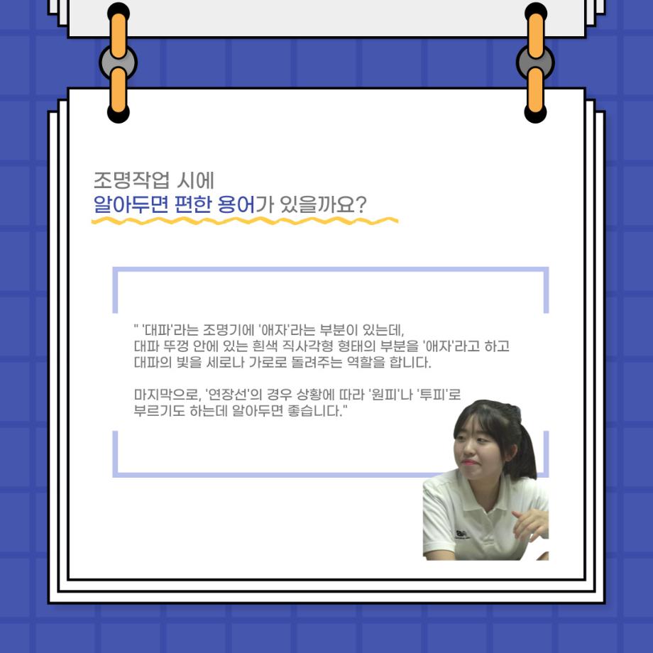 본문 시작 홈으로 커뮤니티 학과소개 입학정보 교수소개 학과과정 커뮤니티 공연예매 안내 홈페이지가이드 포토갤러리 공지사항 포토갤러리 작품DB 동아리 학사일정 학생회 포토갤러리 페이스북 트위터 프린트 사이와의 인터뷰 - 23년도 조명사수 ‘오승아‘ 연기예술학과 3504 2023-07-13 안녕하십니까! 23년도 학회 ‘사이’입니다! 학회 ‘사이’의 네번째 인터뷰로 연기예술학과 23년도 조명 사수인 오승아 학생과 인터뷰를 진행했습니다. 이번 인터뷰에서는 조명에 대한 매력과 조명 작업에서 가장 중요한 것, 조명 작업에서 알아두어야 하는 것 등 다양한 인터뷰를 진행하였습니다. 앞으로 있을 인터뷰 컨텐츠 ‘사인’ 많은 사랑 부탁드립니다. 목록 이전2023학년도 1학기 MCI 다면적진로탐색검사 실시 안내 이전제 94회 세명대학교 연기예술학과 정기공연 1학년 기초연기 물체 없는 행동 발표회<백지의 공백> 담당부서 : 연기예술학과 담당자 : - 연락처 : 043-649-1733 최종수정일 : 2024-10-26 만족도조사 만족도 조사 이 페이지에서 제공하는 정보에 대하여 만족하시나요? 매우만족 만족 보통 불만족 매우불만족