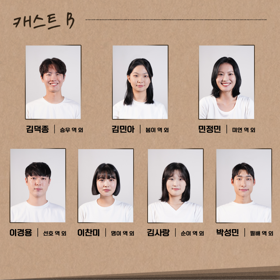 본문 시작 홈으로 커뮤니티 학과소개 입학정보 교수소개 학과과정 커뮤니티 공연예매 안내 홈페이지가이드 포토갤러리 공지사항 포토갤러리 작품DB 동아리 학사일정 학생회 포토갤러리 페이스북 트위터 프린트 제 16회 세명대학교 연기예술학과 졸업작품 <썬샤인의 전사들> 포스터 & 캐스트 연기예술학과 3483 2023-10-31 2023. 11. 02. CAST A 2023. 11. 03. CAST B 2023. 11. 04. CAST A 2023. 11. 05. CAST B 서울 대학로 민송아트홀 1관 목록 이전2023 공연예술 전공자를 위한 취업 특강 다음 학습법 특강 4차 - PPT제작 및 스피치 노하우 담당부서 : 연기예술학과 담당자 : - 연락처 : 043-649-1733 최종수정일 : 2024-10-26 만족도조사 만족도 조사 이 페이지에서 제공하는 정보에 대하여 만족하시나요? 매우만족 만족 보통 불만족 매우불만족
