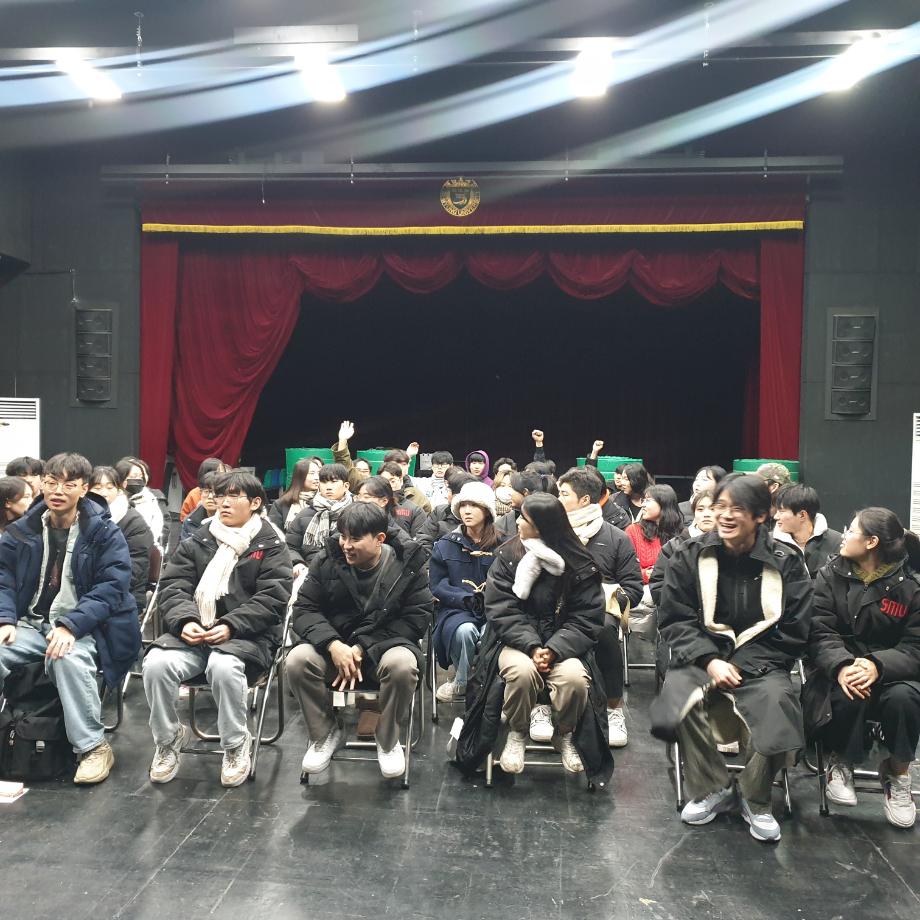 본문 시작 홈으로 커뮤니티 학과소개 입학정보 교수소개 학과과정 커뮤니티 공연예매 안내 홈페이지가이드 포토갤러리 공지사항 포토갤러리 작품DB 동아리 학사일정 학생회 포토갤러리 페이스북 트위터 프린트 세명대학교 연기예술학과 특강 [박건형 배우님] 연기예술학과 3544 2024-01-29 지난 11월 29일 박건형 배우님(뮤지컬, 영화배우)과 함께 하는 특강이 열렸습니다. 이번 특강에서는 배우들이 가지고 있어야 하는 자질과 훈련하는 방법, 배우님의 현장에서의 경험, 오디션을 볼 때 중요한 팁 등을 배울 수 있었습니다. 세명대학교 연기예술학과 학생들의 발전을 위해 열심히 특강해 주신 박건형 배우님 감사합니다. 목록 이전사이와의 인터뷰 - 23년도 극장동아리 영상 파트 부원 ‘김준희‘ 다음 더 가까워진 세명대학교 담당부서 : 연기예술학과 담당자 : - 연락처 : 043-649-1733 최종수정일 : 2024-10-26 만족도조사 만족도 조사 이 페이지에서 제공하는 정보에 대하여 만족하시나요? 매우만족 만족 보통 불만족 매우불만족