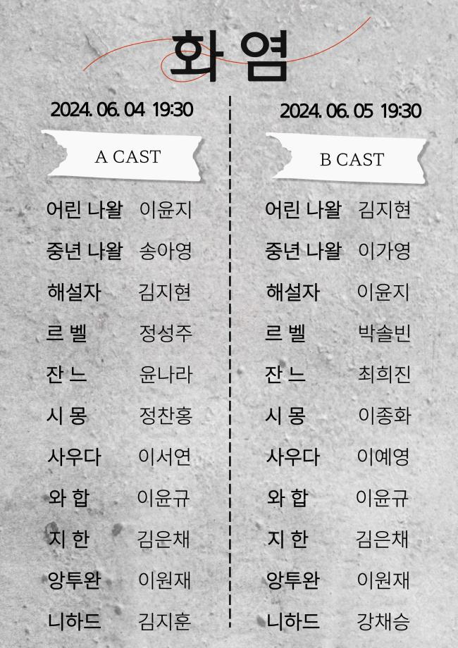 오는 6월 4일과 5일, 졸업작품 <화염>의 성과 공유회가 있을 예정입니다.