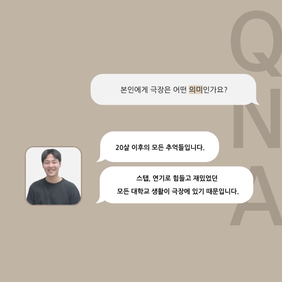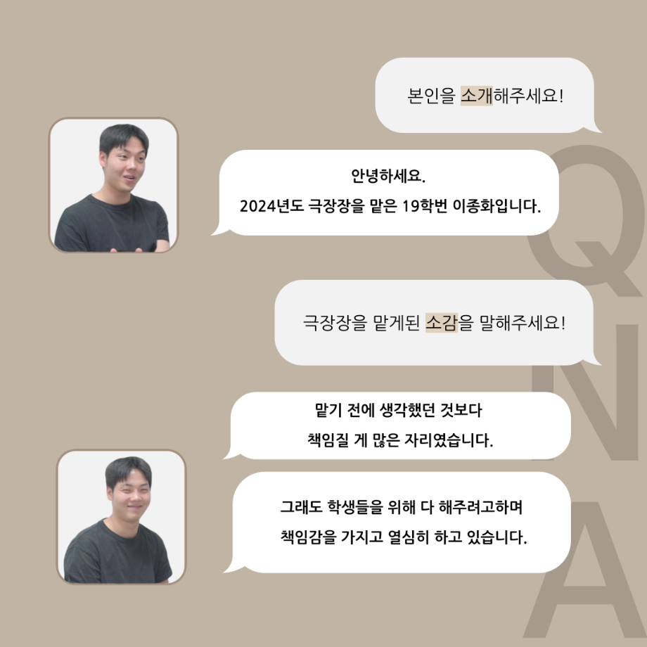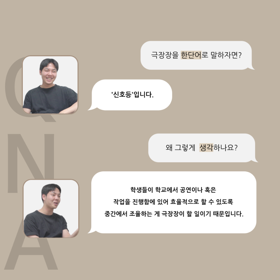 본문 시작 홈으로 커뮤니티 학과소개 입학정보 교수소개 학과과정 커뮤니티 공연예매 안내 홈페이지가이드 포토갤러리 공지사항 포토갤러리 작품DB 동아리 학사일정 학생회 포토갤러리 페이스북 트위터 프린트 '품'위있는 인'터뷰' - 24년도 극장장 <이종화> 연기예술학과 3299 2024-07-12 안녕하십니다 24년도 학회 ‘품‘ 입니다. 학회 ‘품’의 세 번째 인터뷰로 세명대학교 연기예술학과 24학년도 극장장인 이종화 학우와 인터뷰 하는 시간을 가졌습니다. 극장장을 맡게된 소감과 극장은 어떤 의미가 있는지, 파트장과 학과생에게 전하고 싶은 말 등을 질문하는 시간을 가졌습니다. 앞으로 있을 인터뷰 컨텐츠인 ‘품터뷰’ 많은 사랑 부탁드립니다. 목록 이전'품'위있는 인'터뷰' - 24년도 부학회장 <최가람> 다음 제5회 대한민국 신직업·미래직업 아이디어 공모전 담당부서 : 연기예술학과 담당자 : - 연락처 : 043-649-1733 최종수정일 : 2024-10-26 만족도조사 만족도 조사 이 페이지에서 제공하는 정보에 대하여 만족하시나요? 매우만족 만족 보통 불만족 매우불만족