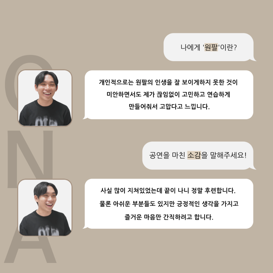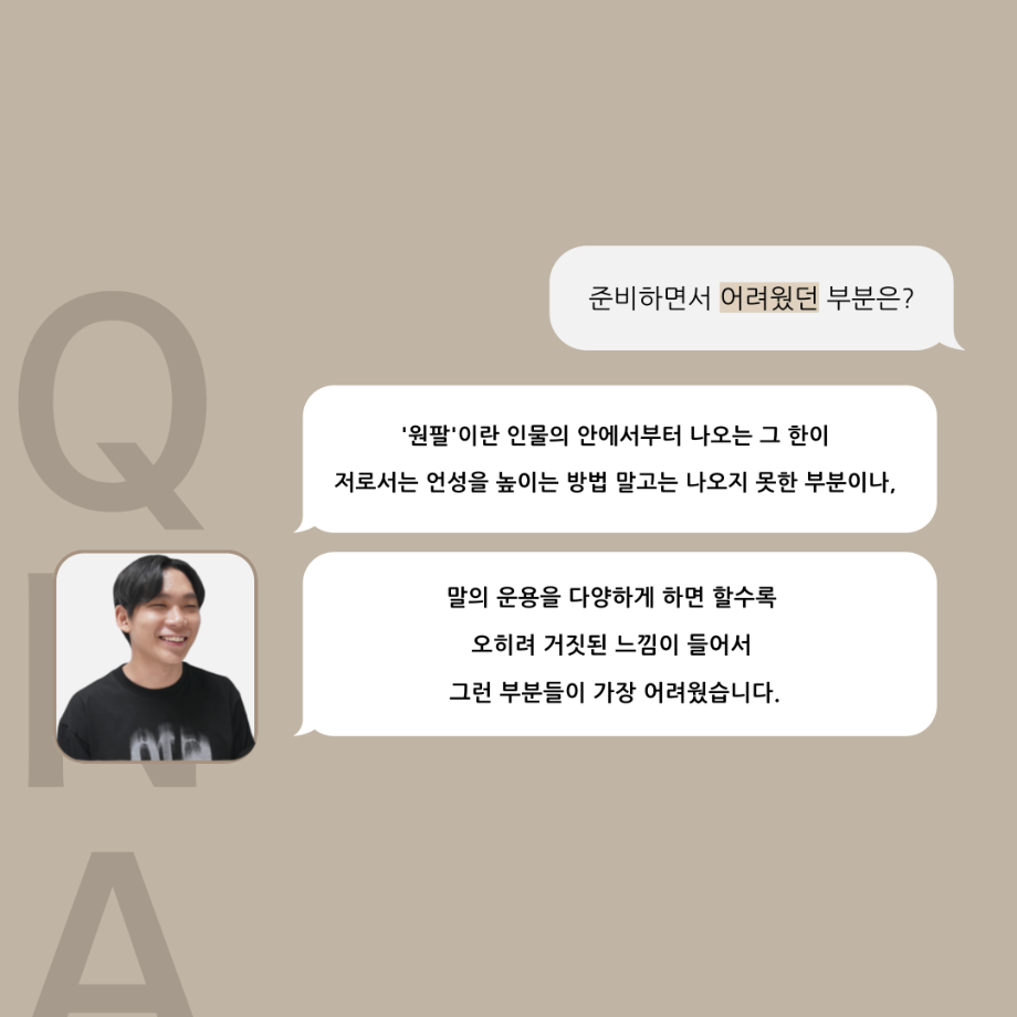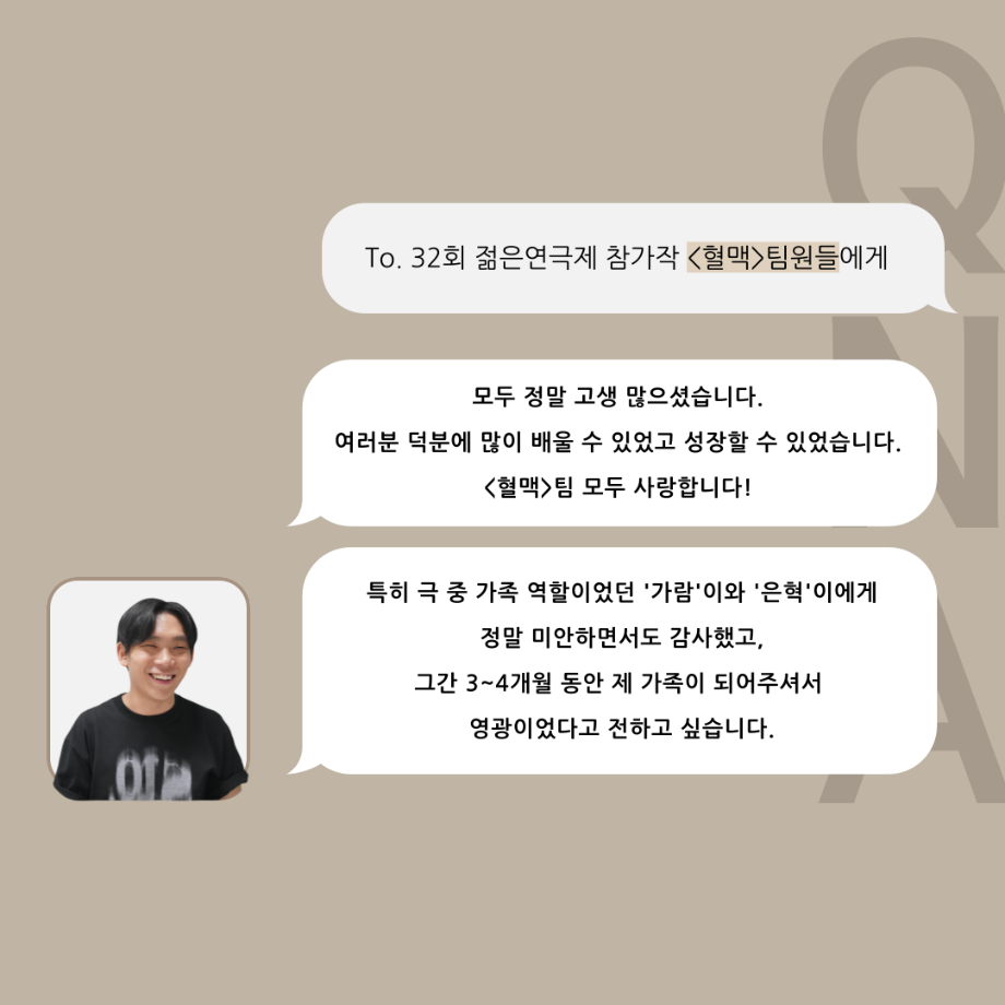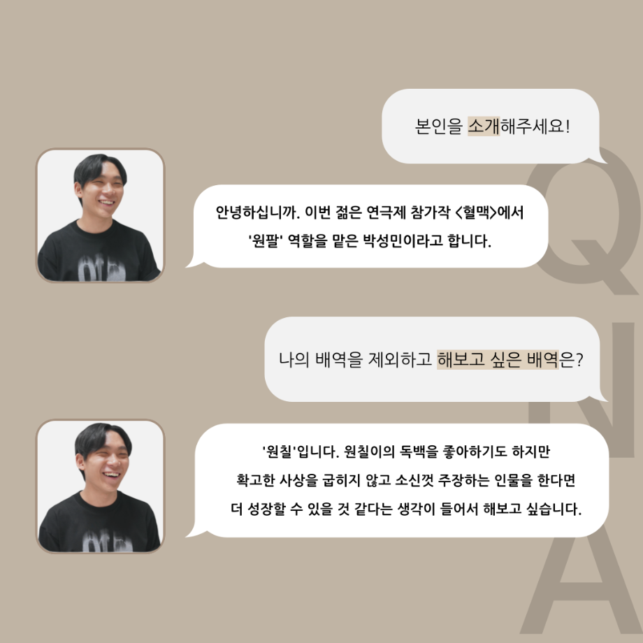 본문 시작 홈으로 커뮤니티 학과소개 입학정보 교수소개 학과과정 커뮤니티 공연예매 안내 홈페이지가이드 포토갤러리 공지사항 포토갤러리 작품DB 동아리 학사일정 학생회 포토갤러리 페이스북 트위터 프린트 ‘품’위있는 인‘터뷰’ - 24년도 젊은연극제 원팔役 <박성민> 연기예술학과 3331 2024-08-09 안녕하십니까. 24년도 학회 ‘품’ 입니다. 학회 ‘품’의 열 한 번째 인터뷰로 세명대학교 연기예술학과 24학년도 젊은연극제 참가작 <혈맥> 원팔 역인 박성민 학우와 인터뷰 하는 시간을 가졌습니다. 가장 좋아하는 장면, 자신의 배역을 제외하고 해보고 싶은 배역 그리고 준비하면서 어려웠던 부분과 공연을 마친 소감 등에 대해 인터뷰 하는 시간을 가졌습니다. 앞으로 있을 인터뷰 컨텐츠인 ‘품터뷰’ 많은 사랑 부탁드립니다. 목록 이전'품'위있는 인'터뷰' - 24년도 젊은연극제 학생 연출 <오승아> 다음 제6회 세명진로 Festival 대면 특강 안내 담당부서 : 연기예술학과 담당자 : - 연락처 : 043-649-1733 최종수정일 : 2024-10-26 만족도조사 만족도 조사 이 페이지에서 제공하는 정보에 대하여 만족하시나요? 매우만족 만족 보통 불만족 매우불만족