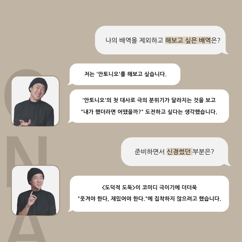 본문 시작 홈으로 커뮤니티 학과소개 입학정보 교수소개 학과과정 커뮤니티 공연예매 안내 홈페이지가이드 포토갤러리 공지사항 포토갤러리 작품DB 동아리 학사일정 학생회 포토갤러리 페이스북 트위터 프린트 ‘품’위있는 인‘터뷰’ - 하계프로젝트 도둑役 <박상훈> 연기예술학과 3177 2024-09-13 안녕하십니까. 24년도 학회 ‘품’ 입니다. 학회 ‘품’의 열 네 번째 인터뷰로 세명대학교 연기예술학과 하계프로젝트 <도덕적 도둑> 의 도둑 역인 박상훈 학우와 인터뷰 하는 시간을 가졌습니다. 가장 좋아하는 장면, 자신의 배역을 제외하고 해보고 싶은 배역 그리고 준비하면서 어려웠던 부분과 공연을 마친 소감 등에 대해 인터뷰 하는 시간을 가졌습니다. 앞으로 있을 인터뷰 컨텐츠인 ‘품터뷰’ 많은 사랑 부탁드립니다. 목록 이전논문통계분석 LIVE 특강 안내 다음 ‘품’위있는 인‘터뷰’ - 하계프로젝트 안토니오役 <정준혁> 담당부서 : 연기예술학과 담당자 : - 연락처 : 043-649-1733 최종수정일 : 2024-10-26 만족도조사 만족도 조사 이 페이지에서 제공하는 정보에 대하여 만족하시나요? 매우만족 만족 보통 불만족 매우불만족