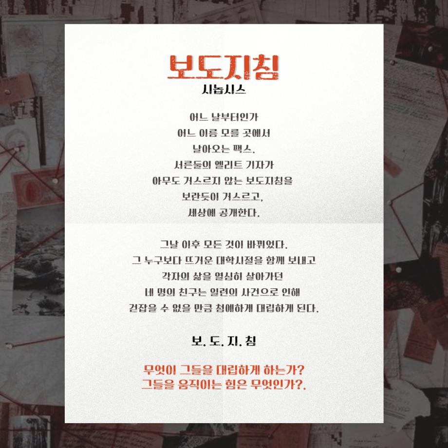 본문 시작 홈으로 커뮤니티 학과소개 입학정보 교수소개 학과과정 커뮤니티 공연예매 안내 홈페이지가이드 포토갤러리 공지사항 포토갤러리 작품DB 동아리 학사일정 학생회 포토갤러리 페이스북 트위터 프린트 제 113회 세명대학교 연기예술학과 동계 프로젝트 <보도지침> 작품소개 연기예술학과 2210 2025-02-19 . 목록 이전2024학년도 공연영상학과 (현 연기예술학과) 학과수여식 다음 제 113회 세명대학교 연기예술학과 동계 프로젝트 <보도지침> 스태프 담당부서 : 연기예술학과 담당자 : - 연락처 : 043-649-1733 최종수정일 : 2024-10-26 만족도조사 만족도 조사 이 페이지에서 제공하는 정보에 대하여 만족하시나요? 매우만족 만족 보통 불만족 매우불만족