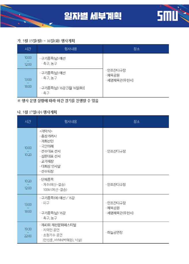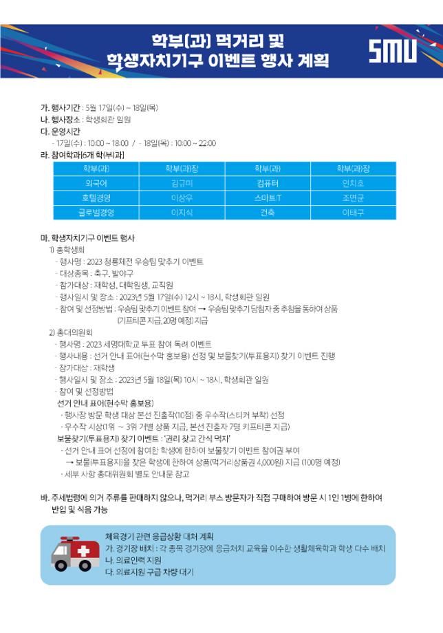 본문 시작 홈으로 학과소식 학과소개 취업정보 교육과정 학과소식 홈페이지가이드 포토갤러리 공지사항 포토갤러리 학과이야기 학과행사 포토갤러리 페이스북 트위터 프린트 세명대학교 제30회 청룡체전 회계세무학과 9160 2023-05-15 세명대학교 제30회 청룡축전!🎉 2023.05.17.(수)~19.(금) 체육대회와 더불어 먹거리 행사 및 다양한 이벤트도 함께 진행된다고 합니다😍 많은 관심과 참여 부탁드립니다!!! 목록 이전세명대학교 <등록금 책임환불제> 다음 2023학년도 세명대학교 하계방학 체류형 프로그램 개방 안내 담당부서 : 회계세무학과 담당자 : - 연락처 : 043-649-1244 최종수정일 : 2024-10-26 만족도조사 만족도 조사 이 페이지에서 제공하는 정보에 대하여 만족하시나요? 매우만족 만족 보통 불만족 매우불만족