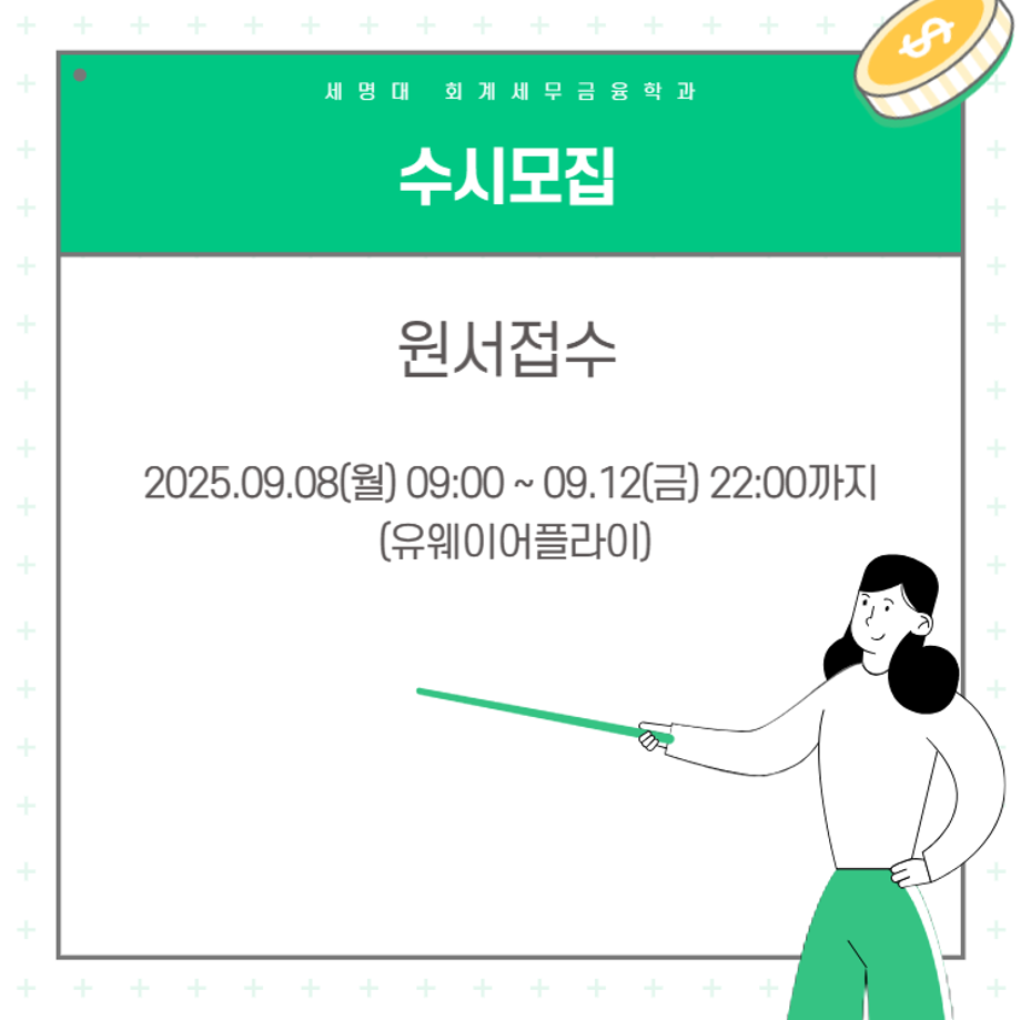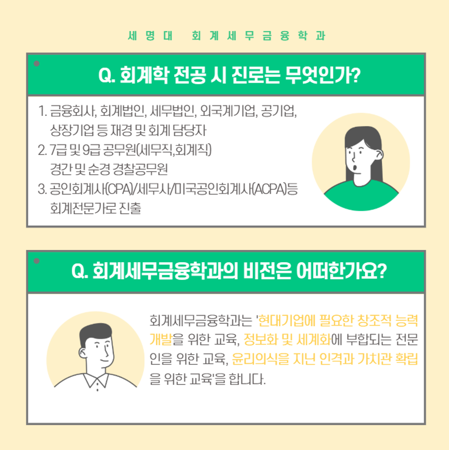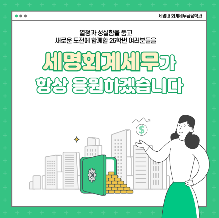 본문 시작 홈으로 학과소식 학과소개 취업정보 교육과정 학과소식 홈페이지가이드 포토갤러리 공지사항 포토갤러리 학과이야기 학과행사 포토갤러리 페이스북 트위터 프린트 💙2026학년도 회계세무금융학과 신입생모집 카드뉴스💙 회계세무금융학과 583 2025-09-09 2026학년도 회계세무금융학과 신입생모집 카드뉴스 목록 이전9월 학사일정 다음 💙세명대 회계세무금융학과 진로 로드맵💙 담당부서 : 회계세무학과 담당자 : - 연락처 : 043-649-1244 최종수정일 : 2024-10-26 만족도조사 만족도 조사 이 페이지에서 제공하는 정보에 대하여 만족하시나요? 매우만족 만족 보통 불만족 매우불만족