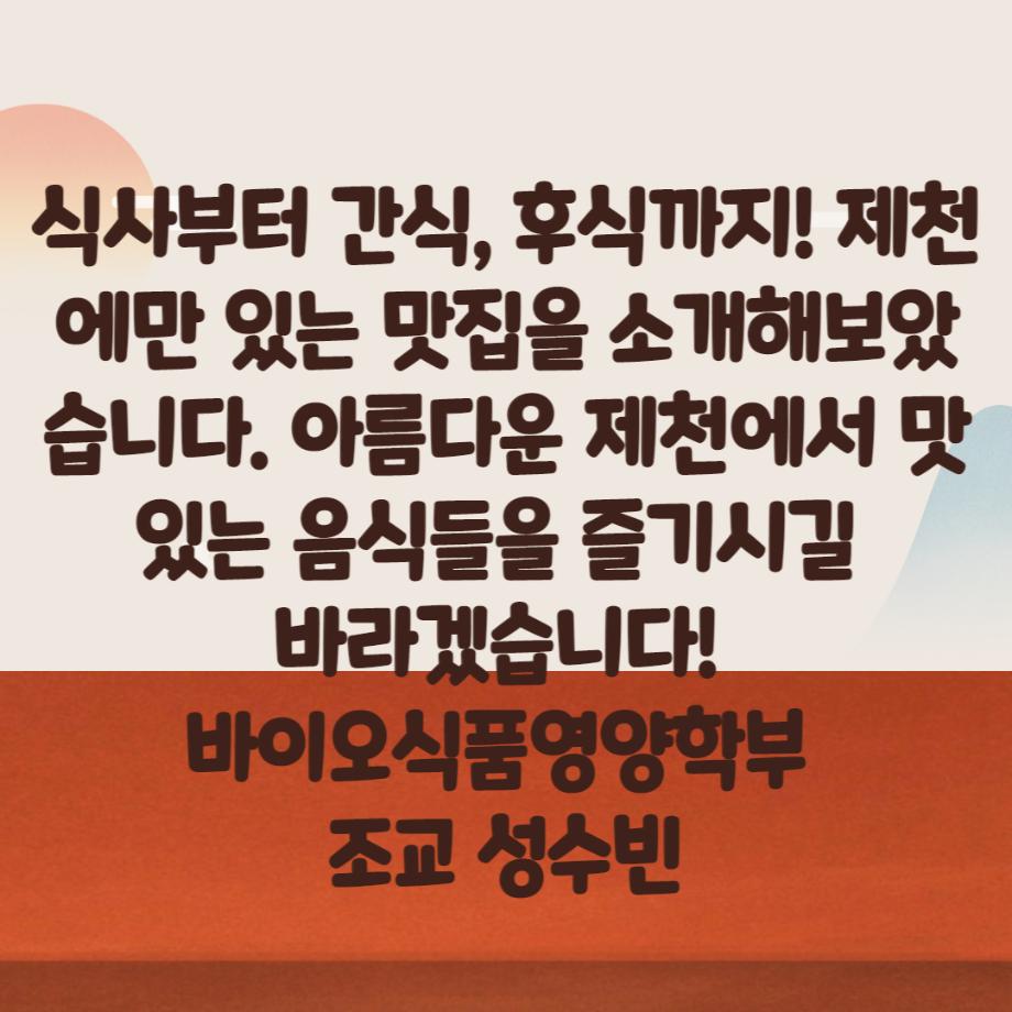 본문 시작 홈으로 커뮤니티 학부소개 진로·취업 교육과정 커뮤니티 대학원 입학상담 홈페이지가이드 갤러리 공지사항 갤러리 학생회 동문회 전공자료실 전공동아리 Youtube Instagram 갤러리 페이스북 트위터 프린트 ♥제천시 맛집 추천♥ 바이오식품영양학부 2728 2022-09-13 목록 이전9월 학사일정 안내 다음 2022학년도 2학기 재학생 학생증 발급신청 안내 담당부서 : 바이오식품영양학부 담당자 : - 연락처 : 043-649-1430 최종수정일 : 2024-10-26 만족도조사 만족도 조사 이 페이지에서 제공하는 정보에 대하여 만족하시나요? 매우만족 만족 보통 불만족 매우불만족