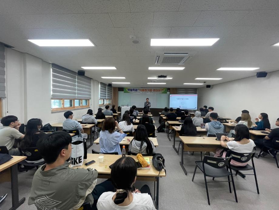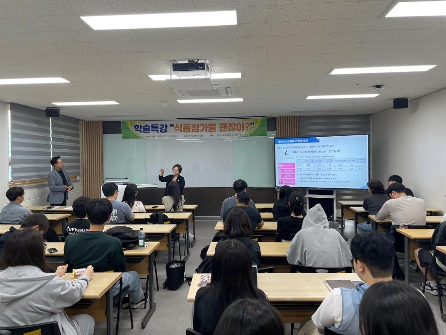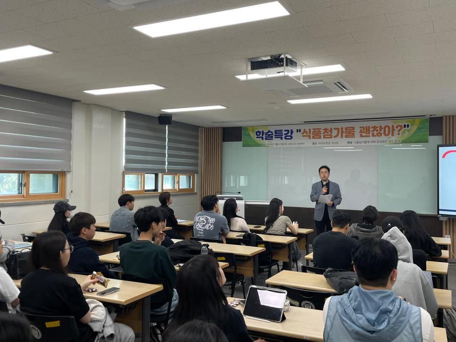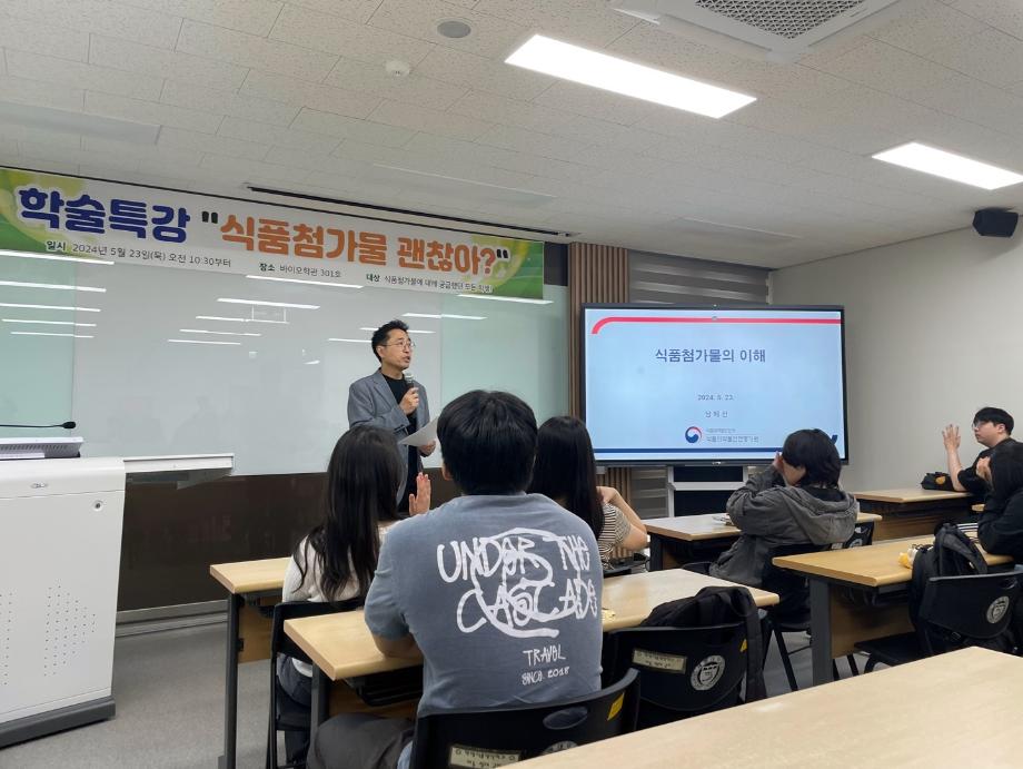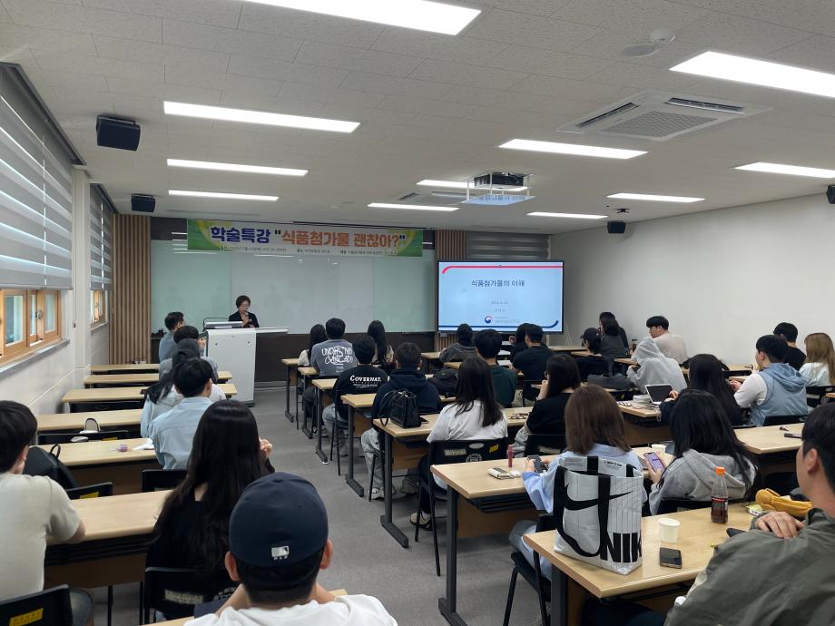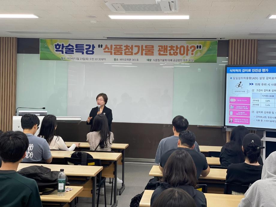 본문 시작 홈으로 커뮤니티 학부소개 진로·취업 교육과정 커뮤니티 대학원 입학상담 홈페이지가이드 갤러리 공지사항 갤러리 학생회 동문회 전공자료실 전공동아리 Youtube Instagram 갤러리 페이스북 트위터 프린트 2024학년도 1학기 학술특강(강사: 식품의약품안전평가원 남혜선 연구관님) 바이오식품영양학부 2588 2024-05-28 2024학년도 1학기 학술특강(식품첨가물학)을 진행하였습니다. 1. 일시: 5월 23일(목) 오전 10시 30분 2. 장소: 바이오학관 301호 식품의약품안전평가원 남혜선 연구관님을 강사로 모신 본 특강에는 총 49명(교원: 3명, 학생: 46명)이 참석하였고, 특강을 통해 최신화 된 식품첨가물 기준 및 현황과 미래 산업 방향 등을 알아볼 수 있었으며 질의응답 시간을 통하여 평소 가졌던 실제적인 궁금증들을 해결할 수 있었습니다. 목록 이전[수상안내]한국식품영양학회 춘계학술대회 우수포스터상 수상 다음 비교과특강 'Alot를 활용한 디지털바이오헬스케어' 담당부서 : 바이오식품영양학부 담당자 : - 연락처 : 043-649-1430 최종수정일 : 2024-10-26 만족도조사 만족도 조사 이 페이지에서 제공하는 정보에 대하여 만족하시나요? 매우만족 만족 보통 불만족 매우불만족