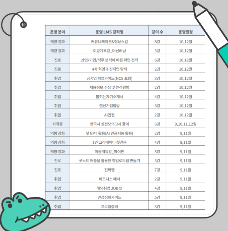 본문 시작 홈으로 We can 취업 매력적인 학과소개 흥미로운 교육과정 특별CC프로그램 We can 취업 따뜻한 커뮤니티 홈페이지가이드 취업지원프로그램 채용정보 취업지원프로그램 광고업계 회사소개 취업지원프로그램 페이스북 트위터 프린트 ★ [2025 대일플] 2025학년도 2학기 진로·취업 LMS 특강 안내 ★ 광고홍보학과 410 2025-09-05 대학일자리플러스센터 진로, 취업 지원 프로그램 목록 이전[디지털마케터취업교육생모집]한국디지털광고협회_취업연계교육 다음 ★위세광명포인트 5점★ 2025학년도 취업대비 영어인터뷰 교실 수강생 모집 안내