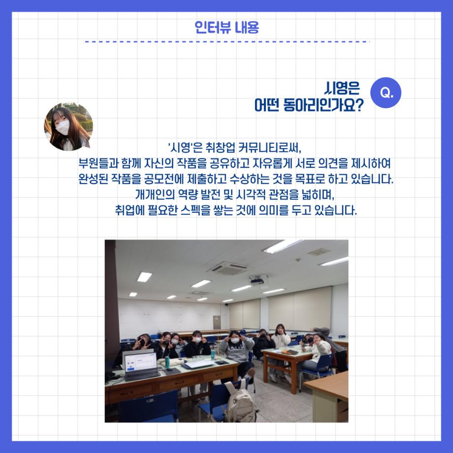 본문 시작 홈으로 학과자랑 학과소개 학과과정 시영소식 입학/취업 AI 학과자랑 SNS소통 홈페이지가이드 공모전 동아리 학과자랑 갤러리 공모전 동아리 졸업전시회 DesingN_us 외 DesingN_us 외 DesingN_us 외 페이스북 트위터 프린트 시각영상디자인학과 동아리 소개_시영 시각영상디자인학과 2168 2023-05-15 목록 이전2022년도 상반기 공모전 우수 수상작 다음 시각영상디자인학과 동아리 소개_미려 담당부서 : 시각영상디자인학과 담당자 : - 연락처 : 043-649-1726 최종수정일 : 2024-10-26 만족도조사 만족도 조사 이 페이지에서 제공하는 정보에 대하여 만족하시나요? 매우만족 만족 보통 불만족 매우불만족