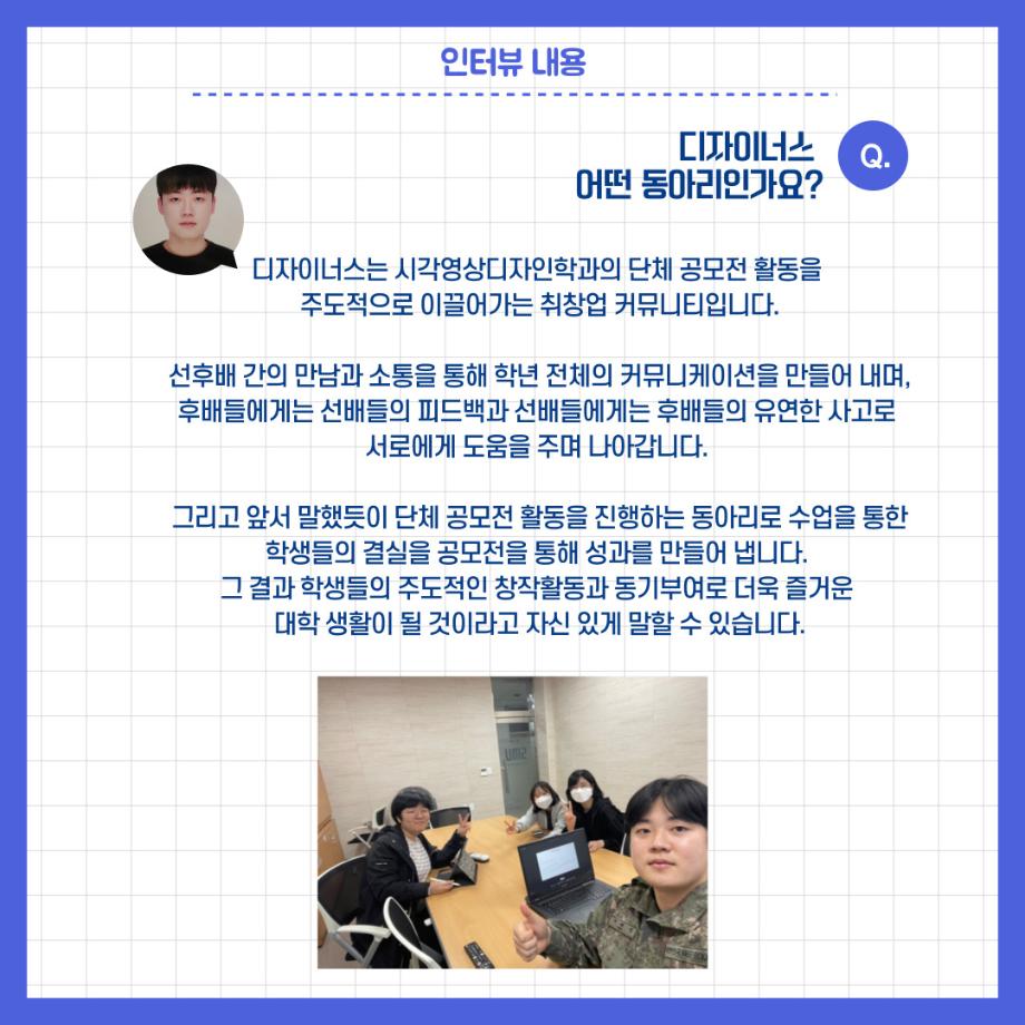 본문 시작 홈으로 학과자랑 학과소개 학과과정 시영소식 입학/취업 AI 학과자랑 SNS소통 홈페이지가이드 공모전 동아리 학과자랑 갤러리 공모전 동아리 졸업전시회 DesingN_us 외 DesingN_us 외 DesingN_us 외 페이스북 트위터 프린트 시각영상디자인학과 동아리 소개_디자이너스 시각영상디자인학과 2714 2023-05-15 목록 이전시각영상디자인학과 동아리 소개_스터디자인 다음 시영 동아리 활동 사진 담당부서 : 시각영상디자인학과 담당자 : - 연락처 : 043-649-1726 최종수정일 : 2024-10-26 만족도조사 만족도 조사 이 페이지에서 제공하는 정보에 대하여 만족하시나요? 매우만족 만족 보통 불만족 매우불만족