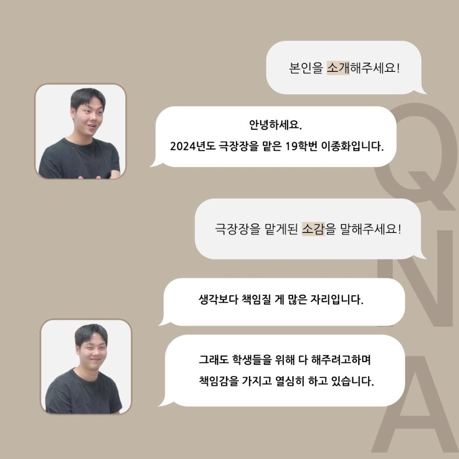 본문 시작 홈으로 커뮤니티 학과소개 입학정보 교수소개 학과과정 커뮤니티 공연예매 안내 홈페이지가이드 동아리 공지사항 포토갤러리 작품DB 동아리 학사일정 학생회 극장 스탭 동아리 무용 동아리 뮤지컬 동아리 극장 스탭 동아리 배우 훈련 동아리 극장 스탭 동아리 페이스북 트위터 프린트 ’품‘위있는 인’터뷰‘ - 24년도 극장장 <이종화> 연기예술학과 2488 2024-07-12 안녕하십니다. 24년도 학회 ‘품‘ 입니다. 학회 ‘품’의 세 번째 인터뷰로 세명대학교 연기예술학과 24학년도 극장장인 이종화 학우와 인터뷰 하는 시간을 가졌습니다. 극장장을 맡게된 소감과 극장은 어떤 의미가 있는지, 파트장과 학과생에게 전하고 싶은 말 등을 질문하는 시간을 가졌습니다. 앞으로 있을 인터뷰 컨텐츠인 ‘품터뷰’ 많은 사랑 부탁드립니다. 목록 이전세명대학교 연기예술학과 극장동아리 ‘짜스트’ - 무대, 조명 다음 ’품‘위있는 인’터뷰‘ - 24년도 무대장 <장보배> 만족도조사 만족도 조사 이 페이지에서 제공하는 정보에 대하여 만족하시나요? 매우만족 만족 보통 불만족 매우불만족