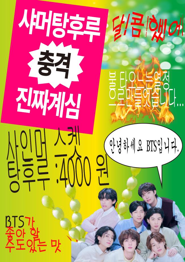 본문 시작 홈으로 시영소식 학과소개 학과과정 시영소식 입학/취업 AI 학과자랑 SNS소통 홈페이지가이드 학과행사 공지사항 학과행사 공모전 학생 인터뷰 학과행사 페이스북 트위터 프린트 청룡축전 먹거리부스 시각영상디자인학과 2349 2023-09-19 청룡축전 2023. 09. 20 (수) ~ 2023. 09. 21 (목) 먹거리부스에서 탕후루(통귤, 샤인머스캣, 토마토)를 판매합니다! 이벤트도 있으니 많은 관심과 사랑 부탁드립니다! 목록 이전2023학년도 인문예술대 제천시자원봉사센터 프리마켓 다음 청룡축전 먹거리부스 마무리 담당부서 : 시각영상디자인학과 담당자 : - 연락처 : 043-649-1726 최종수정일 : 2024-10-26 만족도조사 만족도 조사 이 페이지에서 제공하는 정보에 대하여 만족하시나요? 매우만족 만족 보통 불만족 매우불만족