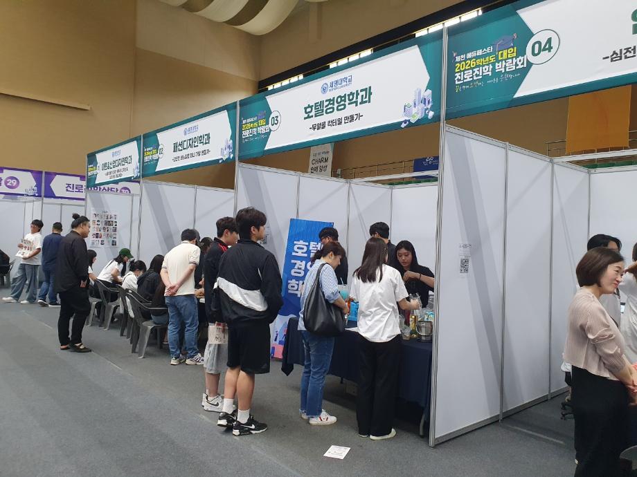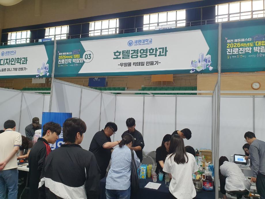 본문 시작 홈으로 학과소개 커뮤니티 학과소개 교육 홈페이지가이드 학과행사 학과장인사말 교수소개 학과행사 학과행사 페이스북 트위터 프린트 2026년 제천에듀페스타 대입진로진학 박람회_호텔경영학과 호텔경영학과 1024 2025-06-16 2026년 제천에듀페스타 대입진로진학 박람회_호텔경영학과 목록 이전2025년 교직이수 학생 교생실습_한국호텔관광고등학교 다음 2025년 세명대학교 하계 교직원 워크숍 만족도조사 만족도 조사 이 페이지에서 제공하는 정보에 대하여 만족하시나요? 매우만족 만족 보통 불만족 매우불만족
