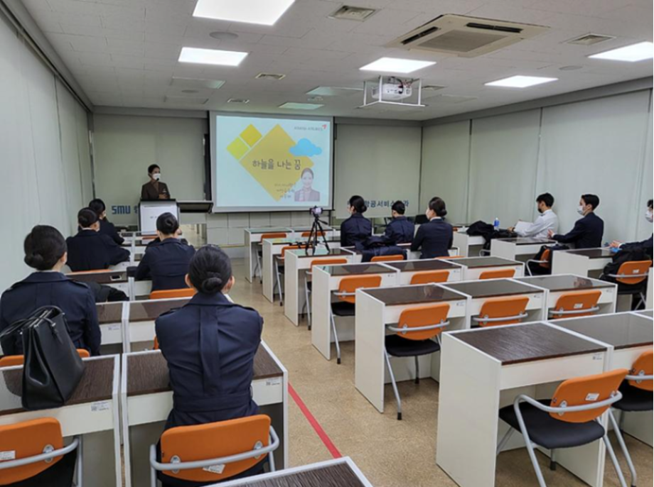 강의는 학교생활, 면접 준비 과정, 신입 승무원 교육 과정 순서로 이루어졌으며 마지막에는 Q & A를 통해 평소에 궁금했던 점에 대해 묻고 답하는 시간을 가졌다.