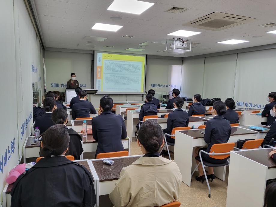 지난 3월 29일 세명대학교 항공서비스학과에서는 아시아나항공에서 6년째 근무하고 계시는 승무원님과 함께 ✨현직 캐빈 승무원 특강✨이 진행되었습니다