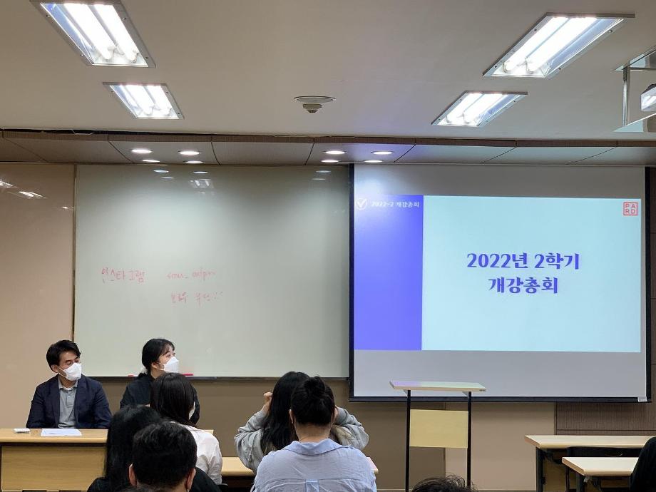 본문 시작 홈으로 매력적인 학과소개 매력적인 학과소개 흥미로운 교육과정 특별CC프로그램 We can 취업 따뜻한 커뮤니티 홈페이지가이드 지금 우리 광홍은 학과개요 학과연혁 교수소개 Wilco로 보는광고홍보학과 지금 우리 광홍은 지금 우리 광홍은 페이스북 트위터 프린트 2022년도 2학기 개강 총회 광고홍보학과 2703 2022-09-16 2022학년도 2학기 개강 총회를 개최했습니다. 2학기 학과 행사 일정 소개와 총회에 오신 학생을 위한 간단한 상품권 추첨 이벤트도 개최했습니다. _일시 : 2022년 9월 6일(화), 18:30 _장소 : 사회과학관 405호 _참석 : 교수님, 학생 1~4학년 목록 이전부산국제광고제 참관 & 학과 홍보부스 운영 다음 2022년도 광고홍보 취업 특강 시리즈 1탄