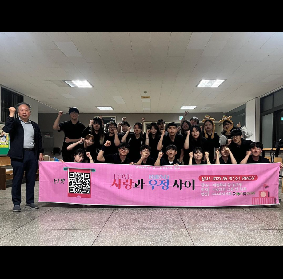 본문 시작 홈으로 매력적인 학과소개 매력적인 학과소개 흥미로운 교육과정 특별CC프로그램 We can 취업 따뜻한 커뮤니티 홈페이지가이드 지금 우리 광홍은 학과개요 학과연혁 교수소개 Wilco로 보는광고홍보학과 지금 우리 광홍은 지금 우리 광홍은 페이스북 트위터 프린트 [이벤트제작]'사랑과우정사이'이벤트 실습 광고홍보학과 5136 2023-08-01 o 2023년도 1학기 3학년 전공 <이벤트제작 (김성훈교수님)> 프로젝트 _ '사랑과 우정 사이' 이벤트 개최 _ 게임과 미션을 수행하면서 나의 반쪽 찾기 프로젝트 _ 세명대학교 재학생 중 사전 신청 받아 참가 _ 협찬 : 부시기획, 플랜웍스 * 향후 이벤트 기업을 희망한다면 수강 추천! 목록 이전대한민국 대학생 광고대회 대전/충청권 입상 다음 [경축]2023대한민국 대학생 광고대회(KOSAC)_챌린저상