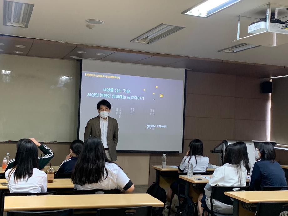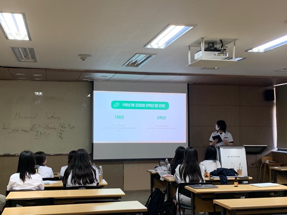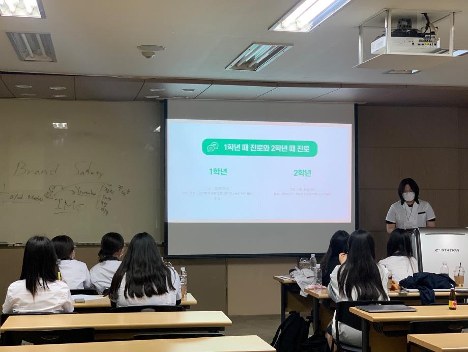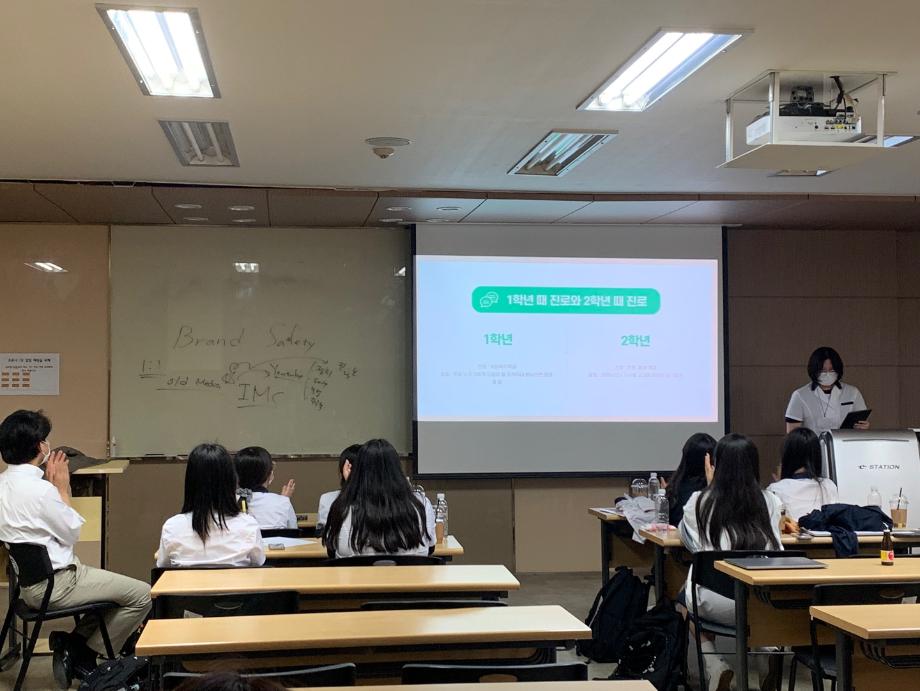 전공체험시간에는 광고 업계의 전반적인 내용, 광고홍보학과 졸업 후 진로, 광고 퀴즈 등을 통해 광고와 조금 더 친해질 수 있는 시간을 가졌습니다.