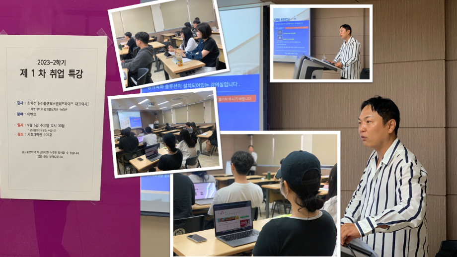 본문 시작 홈으로 매력적인 학과소개 매력적인 학과소개 흥미로운 교육과정 특별CC프로그램 We can 취업 따뜻한 커뮤니티 홈페이지가이드 지금 우리 광홍은 학과개요 학과연혁 교수소개 Wilco로 보는광고홍보학과 지금 우리 광홍은 지금 우리 광홍은 페이스북 트위터 프린트 [취업특강1탄] 광고홍보학과 5636 2023-09-11 23학년도 2학기 취업특강 제1탄 BTL 전문회사 '플랜웍스엔터프라이즈' _일시 : 2023년 9월 6일(수), 12:30~ _장소 : 사회과학관 405호 _내용 : BTL, 이벤트, 프로모션 산업계 현황 및 취업 노하우 _강사 : 플랜웍스엔터프라이즈 최학선(대표이사) * 특강 후 1:1 취업 면담도 진행했습니다. 이벤트 분야 취업을 희망하는 학생은 추후라도 연락주시면 취업을 돕겠습니다. : ) 목록 이전[국제광고대회참가] 다음 [취업특강2탄]