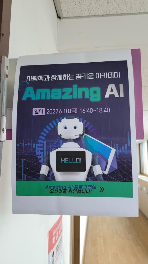 본문 시작 홈으로 학부활동 학부소개 학부활동 교육과정 커뮤니티 학부생활 입학안내 홈페이지가이드 학부행사 학부행사 학생회 활동 전공 동아리 학부갤러리 학부행사 페이스북 트위터 프린트 2022 사람책과 함께하는 꿈키움 아카데미 Amazing AI 특강 진행 컴퓨터학부 1869 2022-06-27 2022년 6월 10일 (금) 단양고등학교에서 이수안 교수님의 'Amazing AI' 특강이 진행되었습니다. 특강은 16:40분부터 18:40분까지 2시간 동안 진행되었습니다. 목록 이전2022 개더타운 플랫폼 활용 수업(메타버스를 활용한 수업설계) 특강 개최 다음 2022 내비게이션 특강 (인공지능 기술과 미래) _ 충주대원고등학교 만족도조사 만족도 조사 이 페이지에서 제공하는 정보에 대하여 만족하시나요? 매우만족 만족 보통 불만족 매우불만족