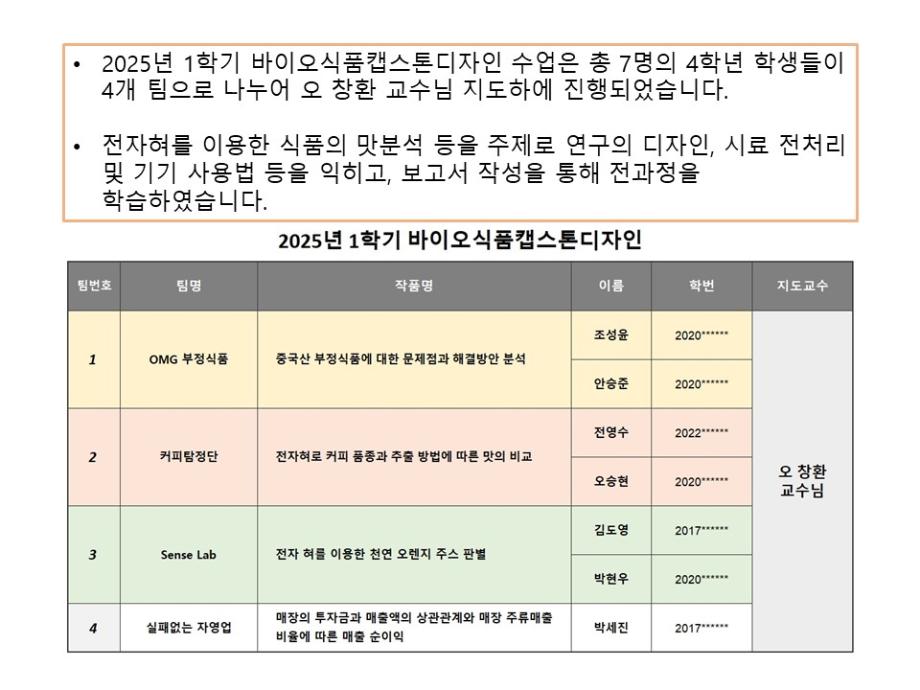 본문 시작 홈으로 학부소개 학부소개 진로·취업 교육과정 커뮤니티 대학원 입학상담 홈페이지가이드 갤러리 학부비전 학부장 인사말 학부연혁 학부장점 교수소개 교육시설 MOU 체결 갤러리 갤러리 페이스북 트위터 프린트 2025년 1학기 바이오캡스톤디자인 바이오식품영양학부 605 2025-06-21 목록 이전HACCP교육 이전20250507 제천고 진로아카데미전문가특강(오창환교수님) 만족도조사 만족도 조사 이 페이지에서 제공하는 정보에 대하여 만족하시나요? 매우만족 만족 보통 불만족 매우불만족