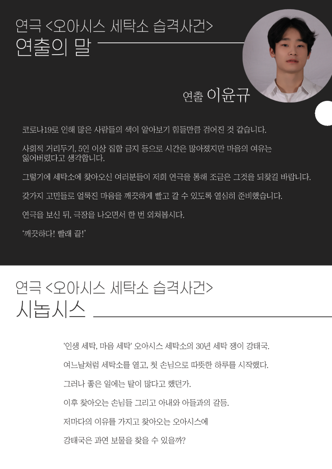 본문 시작 홈으로 학과과정 학과소개 입학정보 교수소개 학과과정 커뮤니티 공연예매 안내 홈페이지가이드 비교과프로그램 교육과정 전공교육 체계도 비교과프로그램 MOU 체결 하계, 동계 프로젝트 하계, 동계 프로젝트 연극놀이 지도사 양성 교육 현장실습 프로그램 액팅플러스 하계, 동계 프로젝트 페이스북 트위터 프린트 2021학년도 동계 프로젝트 ‘오아시스 세탁소 습격사건’ 연기예술학과 2509 2021-04-29 목록 이전2021학년도 동계 프로젝트 ‘자살에 관하여’ 다음 2021학년도 하계 프로젝트 ' 쇼팔로비치 유랑극단' 만족도조사 만족도 조사 이 페이지에서 제공하는 정보에 대하여 만족하시나요? 매우만족 만족 보통 불만족 매우불만족