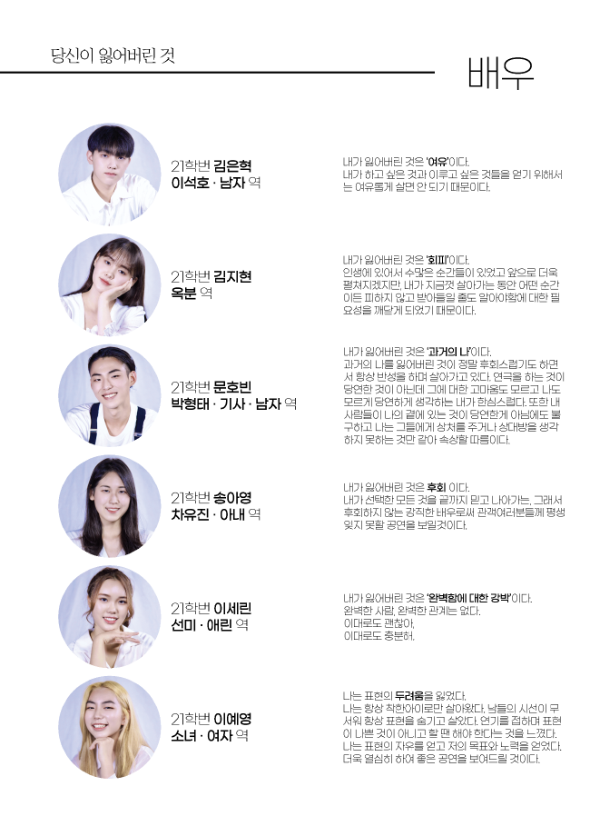 본문 시작 홈으로 학과과정 학과소개 입학정보 교수소개 학과과정 커뮤니티 공연예매 안내 홈페이지가이드 비교과프로그램 교육과정 전공교육 체계도 비교과프로그램 MOU 체결 하계, 동계 프로젝트 하계, 동계 프로젝트 연극놀이 지도사 양성 교육 현장실습 프로그램 액팅플러스 하계, 동계 프로젝트 페이스북 트위터 프린트 2021학년도 하계 프로젝트 '당신이 잃어버린 것' 연기예술학과 2508 2021-08-25 목록 이전2021학년도 하계 프로젝트 ' 쇼팔로비치 유랑극단' 이전2021 극단 포즈 창단 공연 '어정어정 걸어오신다' 만족도조사 만족도 조사 이 페이지에서 제공하는 정보에 대하여 만족하시나요? 매우만족 만족 보통 불만족 매우불만족