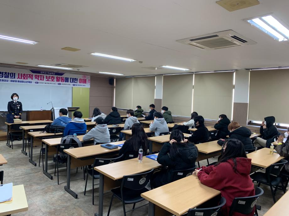 본문 시작 홈으로 학과과정 학과안내 교수소개 학과과정 커뮤니티 홈페이지가이드 비교과프로그램 교육과정 전공교육 체계도 대학원 법학과 비교과프로그램 학사일정 공공법무 지원프로그램 공공법무 지원프로그램 기업법무 지원프로그램 공공법무 지원프로그램 페이스북 트위터 프린트 2020.11.19 경찰 공무원 특강 법학과 3326 2020-11-19 2020년 11월 19일 이윤정 경감님을 모시고 ' 경찰의 사회적 약자 보호 활동에 대한 이해' 이라는 주제로 특강을 진행하였습니다. 목록 다음 2020.11.26 일반공무원 특강 다음 2020.11.19 공인노무사 특강 담당부서 : 법학과 담당자 : - 연락처 : 043-649-1764 최종수정일 : 2024-10-26 만족도조사 만족도 조사 이 페이지에서 제공하는 정보에 대하여 만족하시나요? 매우만족 만족 보통 불만족 매우불만족