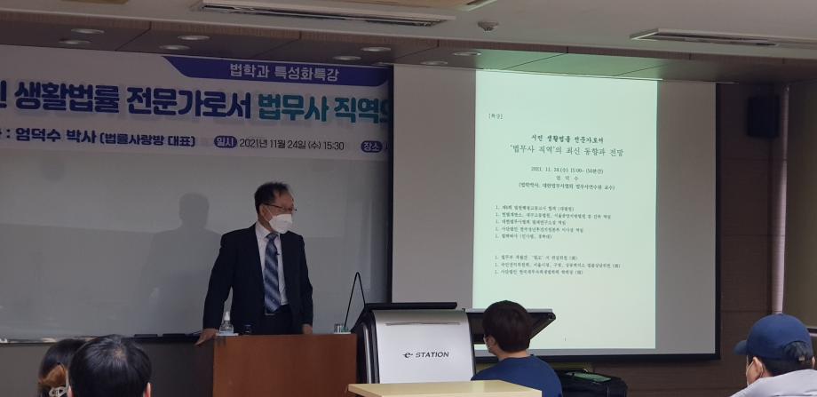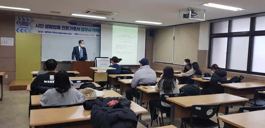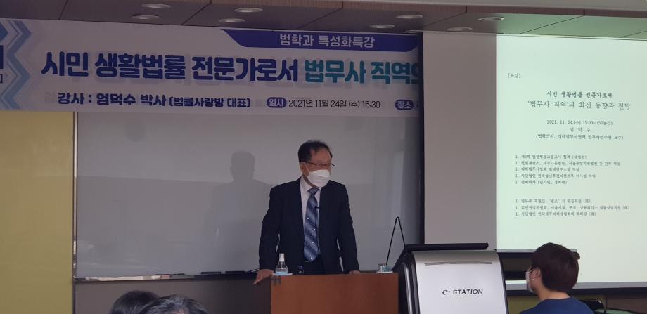 본문 시작 홈으로 학과과정 학과안내 교수소개 학과과정 커뮤니티 홈페이지가이드 비교과프로그램 교육과정 전공교육 체계도 대학원 법학과 비교과프로그램 학사일정 기업법무 지원프로그램 공공법무 지원프로그램 기업법무 지원프로그램 기업법무 지원프로그램 페이스북 트위터 프린트 2021. 11. 24 법무사 특강 법학과 3043 2021-11-24 2021년 11월 24일 법무법인 법률사랑방 소속 엄덕수 법무사님을 모시고 ' 법무사 직역의 최신 동향과 전망' 이라는 주제로 특강을 진행하였습니다. ※본 특강은 코로나19 방역 수칙을 준수하여 진행하였습니다.※ 목록 이전2021. 11. 24 공인중개사 특강 이전2021. 11. 18 가맹거래사 특강 담당부서 : 법학과 담당자 : - 연락처 : 043-649-1764 최종수정일 : 2024-10-26 만족도조사 만족도 조사 이 페이지에서 제공하는 정보에 대하여 만족하시나요? 매우만족 만족 보통 불만족 매우불만족