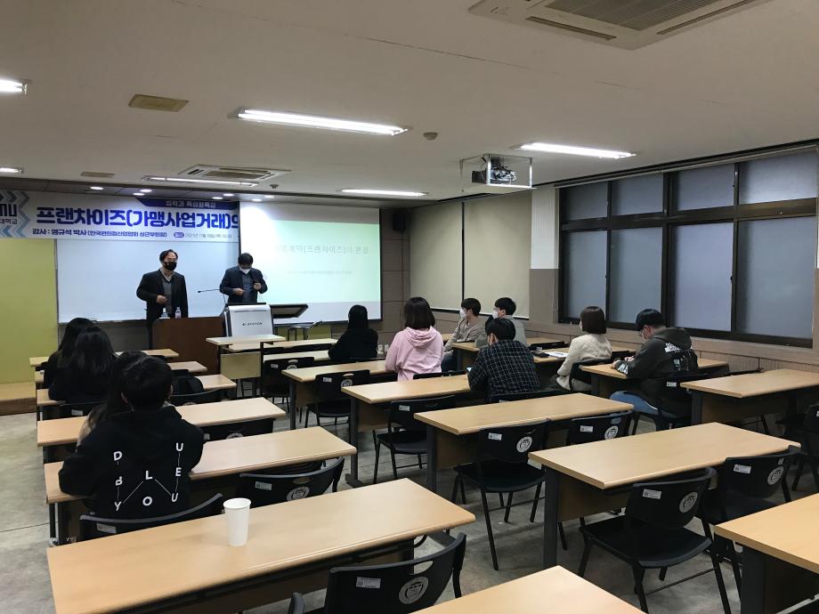 본문 시작 홈으로 학과과정 학과안내 교수소개 학과과정 커뮤니티 홈페이지가이드 비교과프로그램 교육과정 전공교육 체계도 대학원 법학과 비교과프로그램 학사일정 기업법무 지원프로그램 공공법무 지원프로그램 기업법무 지원프로그램 기업법무 지원프로그램 페이스북 트위터 프린트 2021. 11. 18 가맹거래사 특강 법학과 2868 2021-11-18 2021년 11월 18일 한국편의점산업협회 상근부회장직을 맡고 계시는 염규석 박사님을 모시고 ' 프랜차이즈(가맹사업거래)의 본질과 전망' 이라는 주제로 특강을 진행하였습니다. ※본 특강은 코로나19 방역 수칙을 준수하여 진행하였습니다.※ 목록 다음 2021. 11. 24 법무사 특강 다음 2021. 11. 18 행정사 특강 담당부서 : 법학과 담당자 : - 연락처 : 043-649-1764 최종수정일 : 2024-10-26 만족도조사 만족도 조사 이 페이지에서 제공하는 정보에 대하여 만족하시나요? 매우만족 만족 보통 불만족 매우불만족