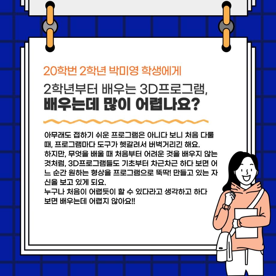 본문 시작 홈으로 교과과정 학과소개 교수소개 교과과정 학과생활 홈페이지가이드 진로 진로 교육과정 전공교육 체계도 자격증 전시회 진로 페이스북 트위터 프린트 산업디자인학과 재학생 인터뷰(2학년) 산업디자인학과 1796 2022-01-24 목록 이전산업디자인학과 재학생 인터뷰(1학년) 다음 산업디자인학과 재학생 인터뷰(3학년) 만족도조사 만족도 조사 이 페이지에서 제공하는 정보에 대하여 만족하시나요? 매우만족 만족 보통 불만족 매우불만족
