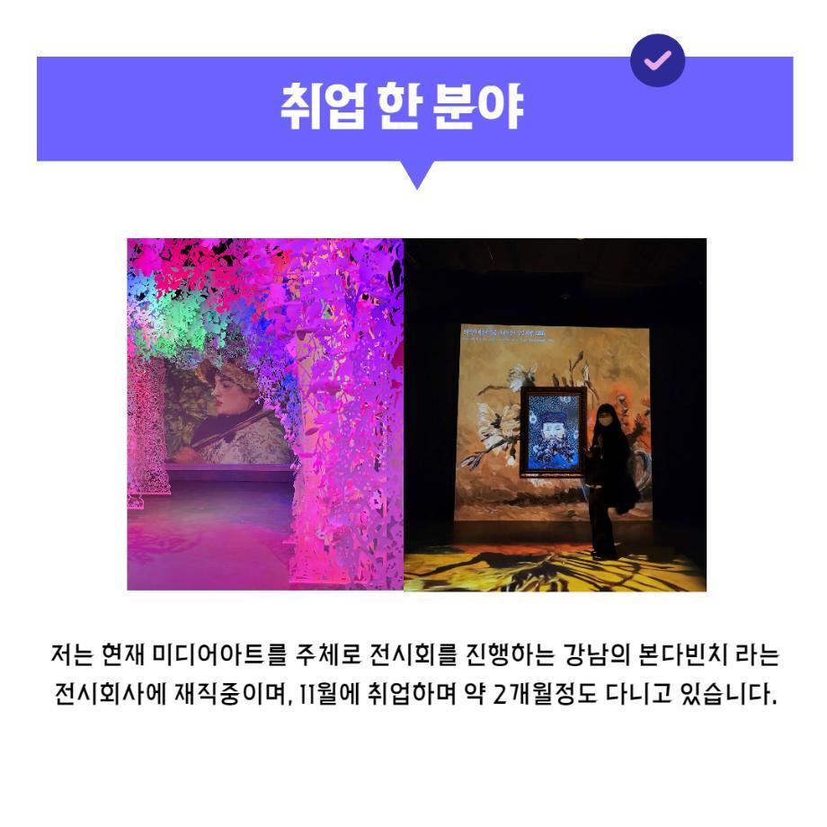 본문 시작 홈으로 입학/취업 학과소개 학과과정 시영소식 입학/취업 AI 학과자랑 SNS소통 홈페이지가이드 취업지금 입학여기 취업지금 전공소개 취업지금 페이스북 트위터 프린트 시디과 졸업 후 어디로 나아갈까? 시각영상디자인학과 1738 2022-01-24 목록 이전졸업생의 취업 우수사례 다음 시각실무체험 수업_디자인현장의 목소리를 듣는 특강 담당부서 : 시각영상디자인학과 담당자 : - 연락처 : 043-649-1726 최종수정일 : 2024-10-26 만족도조사 만족도 조사 이 페이지에서 제공하는 정보에 대하여 만족하시나요? 매우만족 만족 보통 불만족 매우불만족