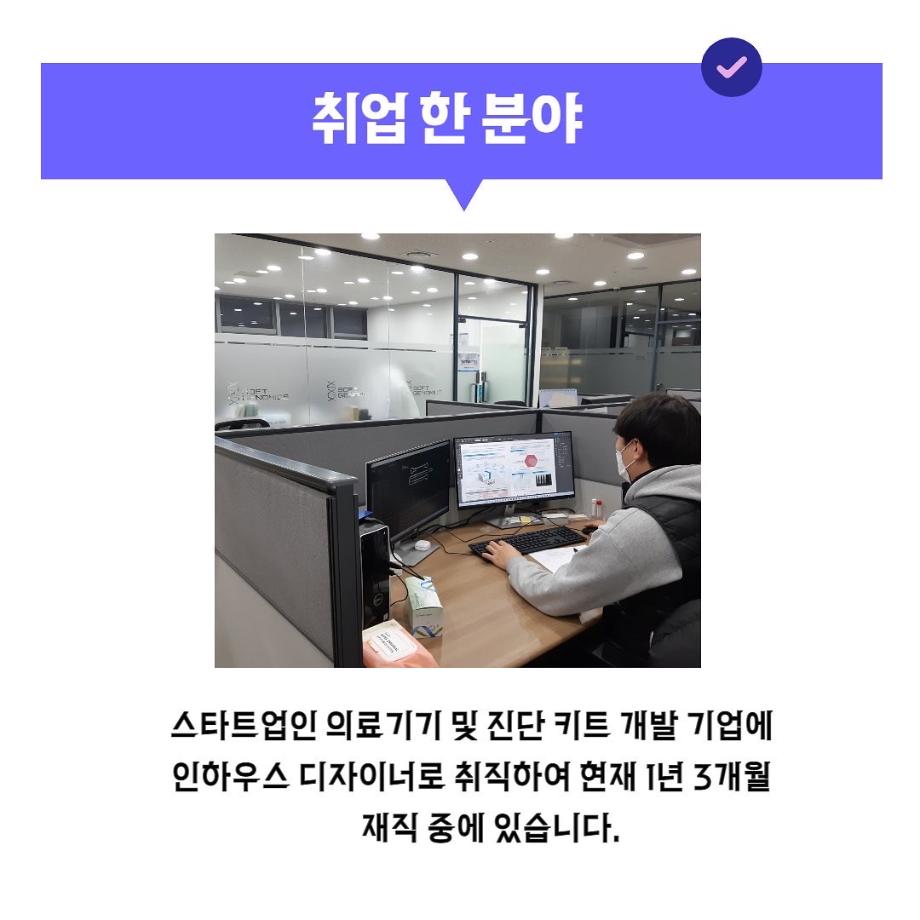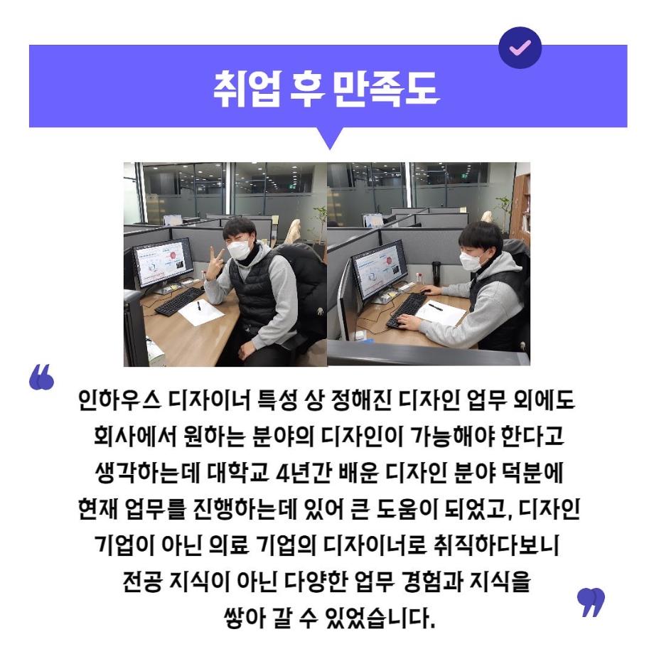 본문 시작 홈으로 입학/취업 학과소개 학과과정 시영소식 입학/취업 AI 학과자랑 SNS소통 홈페이지가이드 취업지금 입학여기 취업지금 전공소개 취업지금 페이스북 트위터 프린트 시디과 졸업 후 어디로 나아갈까? 6 시각영상디자인학과 2852 2022-02-07 목록 이전시디과 졸업 후 어디로 나아갈까? 5 다음 “시각디자인학과 2002학번 반혜승 졸업생” -미국의 세계적 자산운용 회사 Fidelity Investment의 Principal User Experience Desiger 취업! 담당부서 : 시각영상디자인학과 담당자 : - 연락처 : 043-649-1726 최종수정일 : 2024-10-26 만족도조사 만족도 조사 이 페이지에서 제공하는 정보에 대하여 만족하시나요? 매우만족 만족 보통 불만족 매우불만족
