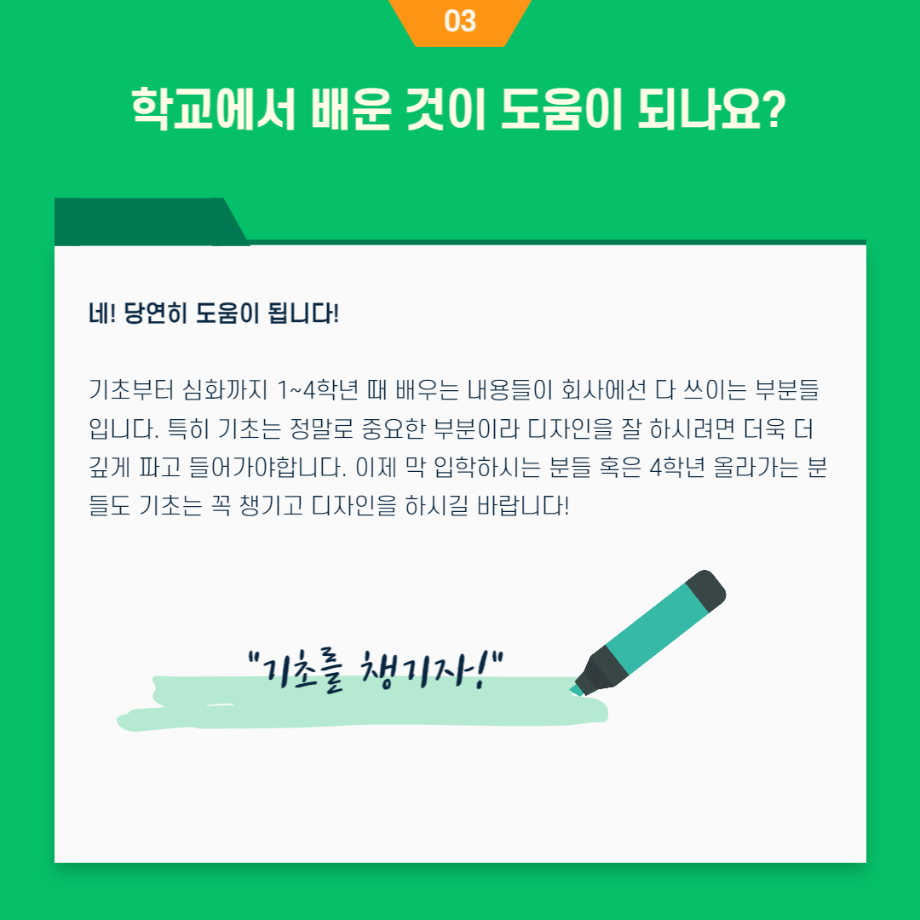 본문 시작 홈으로 입학/취업 학과소개 학과과정 시영소식 입학/취업 AI 학과자랑 SNS소통 홈페이지가이드 취업지금 입학여기 취업지금 전공소개 취업지금 페이스북 트위터 프린트 시각영상디자인학과 윤지훈 졸업생 - 가산디지털단지 디자인회사 취업! 시각영상디자인학과 2561 2023-03-29 목록 이전시각영상디자인학과 19학번 송나은 졸업생 - 서울 강남구 대치동 광고회사 취업! 다음 취업사례 중 대학원 진학 편 담당부서 : 시각영상디자인학과 담당자 : - 연락처 : 043-649-1726 최종수정일 : 2024-10-26 만족도조사 만족도 조사 이 페이지에서 제공하는 정보에 대하여 만족하시나요? 매우만족 만족 보통 불만족 매우불만족