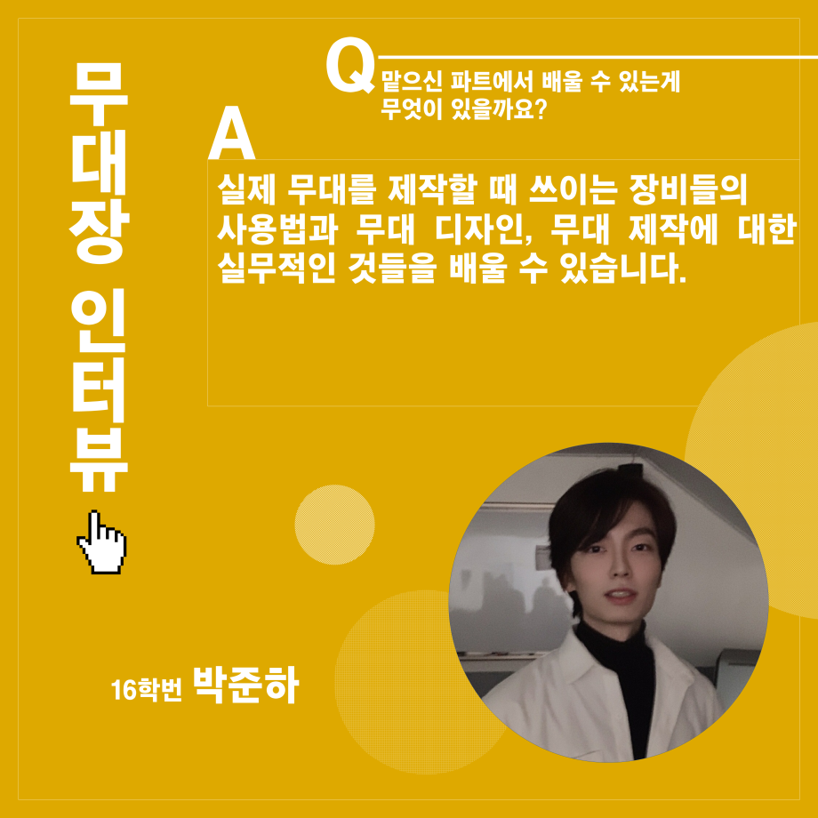 본문 시작 홈으로 학과소개 학과소개 입학정보 교수소개 학과과정 커뮤니티 공연예매 안내 홈페이지가이드 진로 학과개요 학과장인사말 학과연혁 세명대학교 민송아트홀 학과행사 진로 진로 페이스북 트위터 프린트 연기예술학과 무대장 인터뷰 연기예술학과 3000 2022-01-13 목록 이전연기예술학과 극장장 인터뷰 이전대학혁신지원사업 ‘학생참여형 지역연계연구’ 장려상 수상 만족도조사 만족도 조사 이 페이지에서 제공하는 정보에 대하여 만족하시나요? 매우만족 만족 보통 불만족 매우불만족