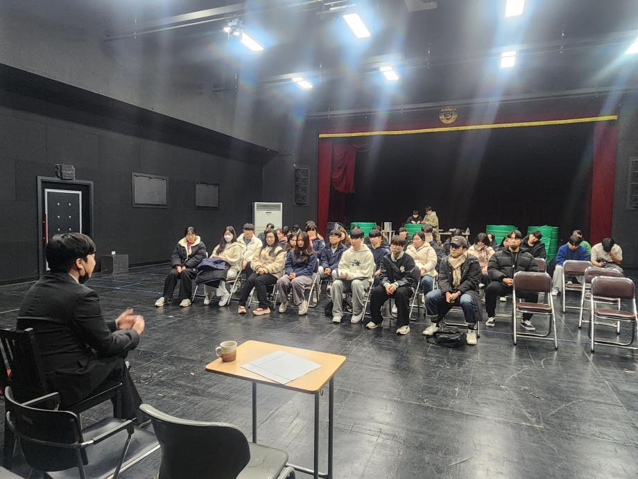 본문 시작 홈으로 학과소개 학과소개 입학정보 교수소개 학과과정 커뮤니티 공연예매 안내 홈페이지가이드 진로 학과개요 학과장인사말 학과연혁 세명대학교 민송아트홀 학과행사 진로 진로 페이스북 트위터 프린트 2023 연기예술학과 재학생을 위한 특강 연기예술학과 2790 2023-11-30 지난 11월 14일 세명대학교 연기예술학과 재학생 대상으로 특강을 진행하였습니다. 졸업생인 13학번 박근형 연출, 박차준(박영광) 배우를 만나뵐 수 있는 기회였습니다. 2학년 배우전공 학생들의 프로필 촬영과 1,2학년 학생들과의 Q&A시간들을 통해 다양한 궁금증을 풀 수 있는 시간이였습니다. 목록 이전졸업생 14학번 문화사업팀 김성주 다음 2023 연기예술학과 재학생을 위한 특강 - 음향감독 만족도조사 만족도 조사 이 페이지에서 제공하는 정보에 대하여 만족하시나요? 매우만족 만족 보통 불만족 매우불만족